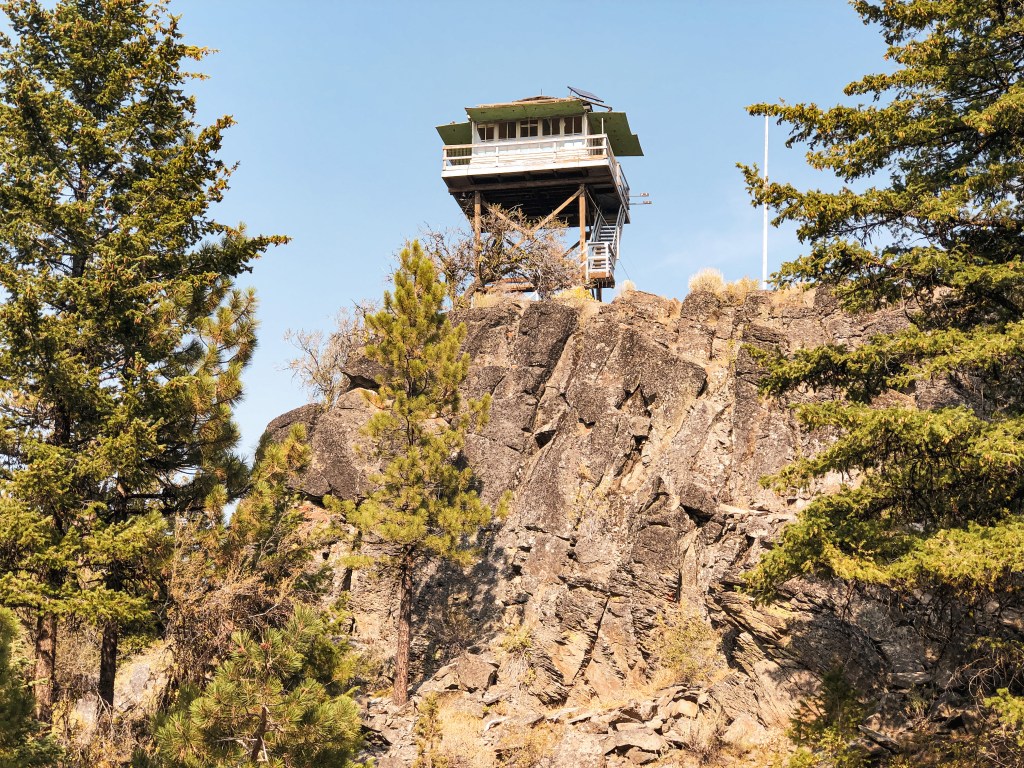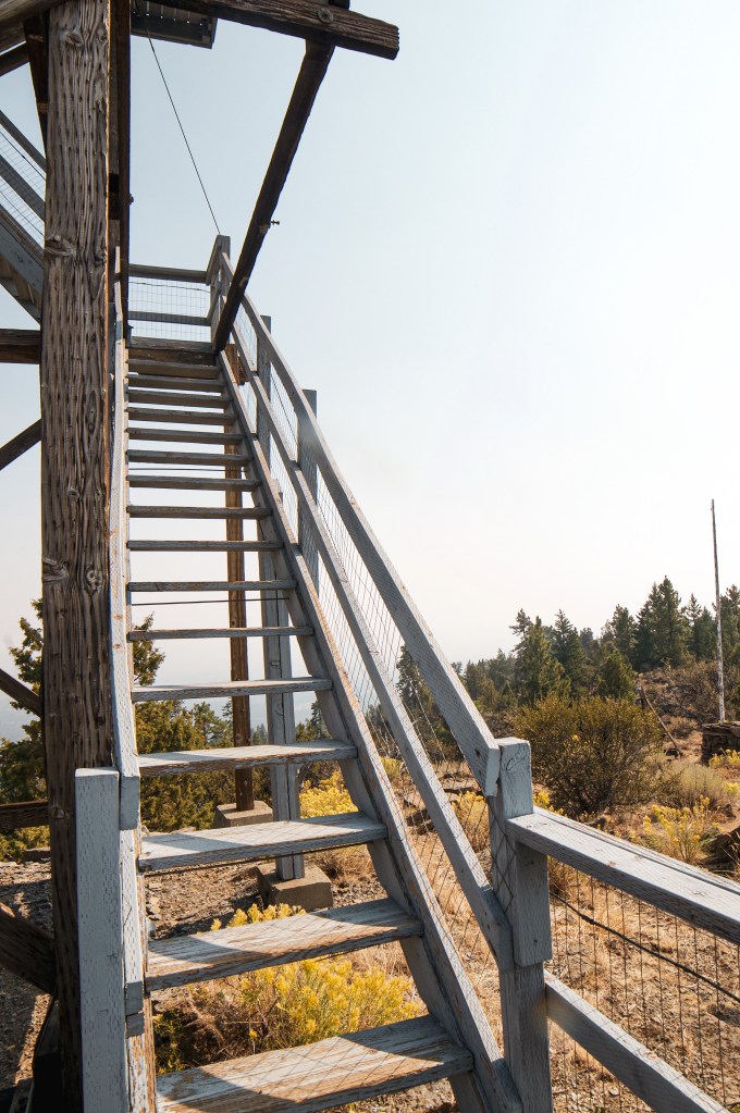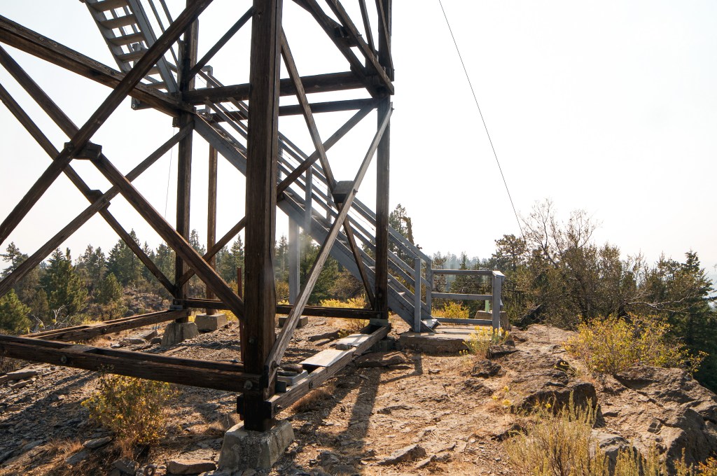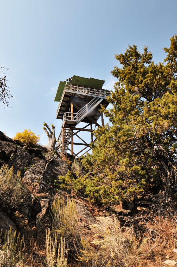 There was a cross made out of horseshoes nailed to a juniper tree on the summit. This was added as a memorial for the previous full-time lookout attendant who passed away due to heart failure last year.