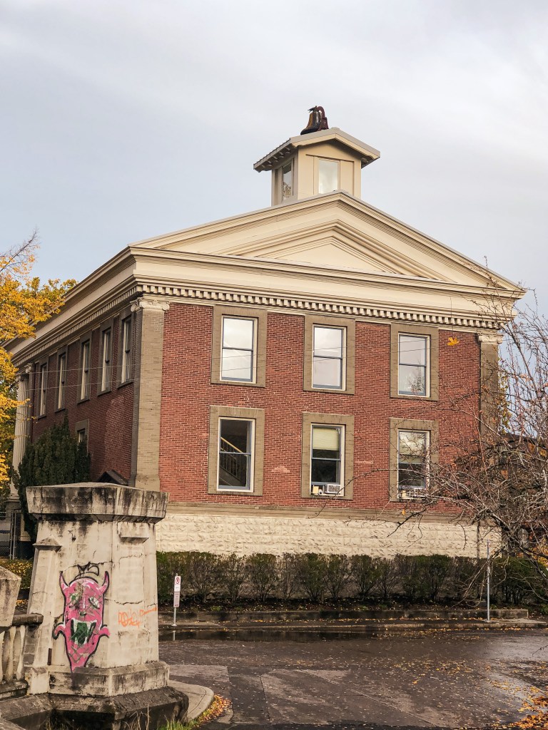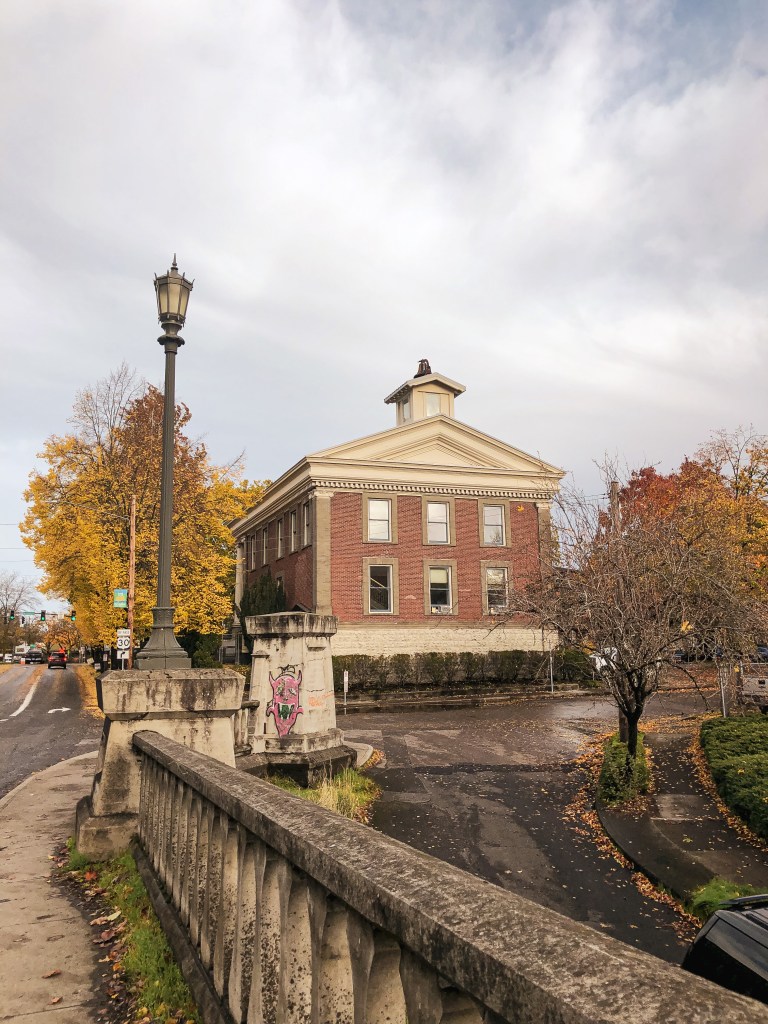 This is a building in the city of Portland that was used for fire detection in Forest Park. It’s located right next to the historic St Johns bridge and overlooks the Willamette River. The building is now used for the city Park Rangers office. My Partner and I decided to walk around the neighborhoods of North Portland and St Johns instead of driving directly to the site. I love looking at the different houses and architecture in this area. It was a rainy fall day but we got a break in the weather for our 6.5 mile walk. You are unable to access the building unless you have an appointment. I’m unsure if they’d grant access to the cupola though.