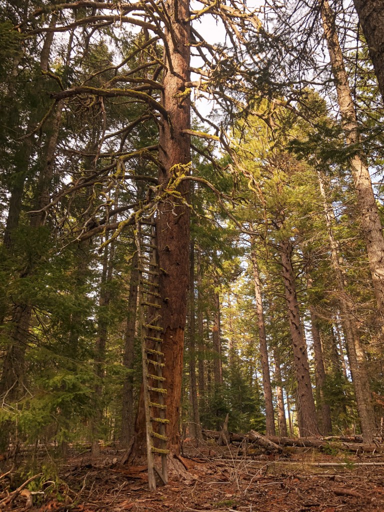 Remnants to the early days of fire detection can still be found in parts of the Mt Hood National Forest. Crow’s nest lookouts are typically a platform that sits on top of a tree with a ladder nailed to the trunk. Before there were lookout towers, fire attendants used to climb the trees to spot fires in the area.