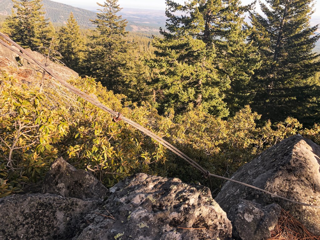 Joe’s point was an open platform built atop a large Ponderosa Pine in the 1930s. There was also a 12×12 cabin built for the lookout in the 1940s. The cabin is no longer on the summit, but you can still see pieces of the old platform and ladder. There’s a nice view of Mt Hood from the rock quarry where you park your car.