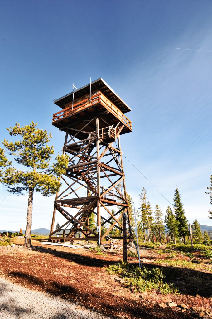In 1937, a combination lookout and water tower were built for the ODF by the CCC of Camp Walker. A 7’x7′ lookout cab was built atop a 3,000 gallon 52′ water tank. This lookout tower was used by the Coos Fire Patrol until the 1950’s. It was also used briefly for air raid spotting during the war, but it was found that most spotting had been done from the ground. The combined lookout and water tower was dismantled in 1965. It wasn’t until 1996 that they decided to build a new lookout tower on Bunker Hill for training. The existing 12’x12′ lookout sits atop a 40′ steel tower next to the district headquarters. The steel tower used was donated by the U.S. Coast Guard. It is currently an interpretive site for visitors and listed on the National Historic Lookout Register. it’s labeled as the Coos Bay Lookout on the tower itself.