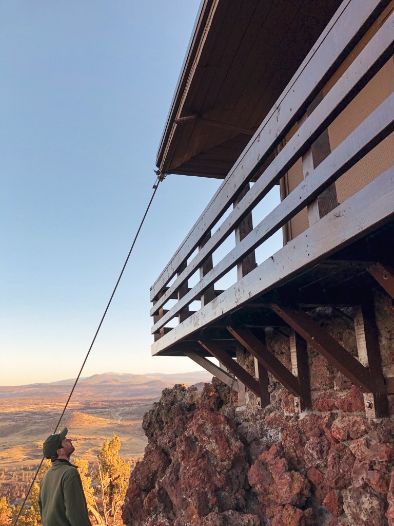 Green Point used to have a 53′ pole lookout tower with L-4 cab and garage built by the CCC in 1939. It was used for aircraft surveillance in 1942 and later destroyed in a windstorm during 1951. The crows nest pre-dates the tower and was added to the summit in 1933. I’d say this one doubles as a former fire lookout site and existing lookout.