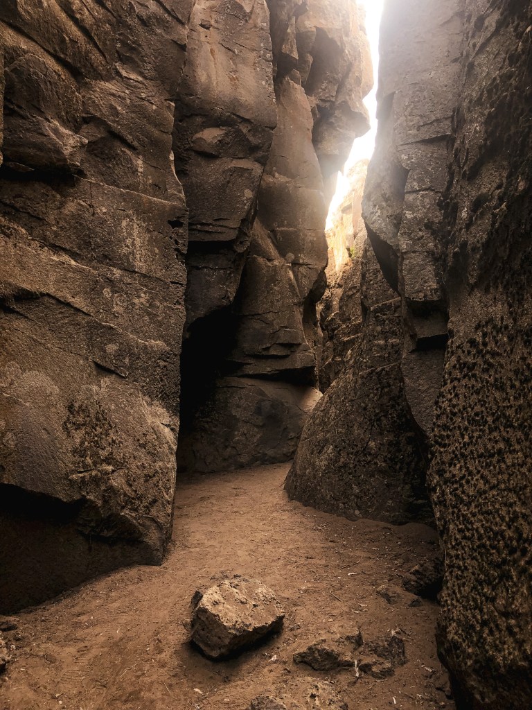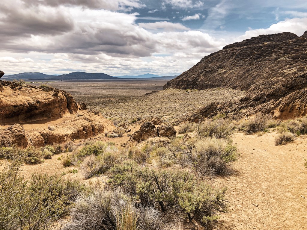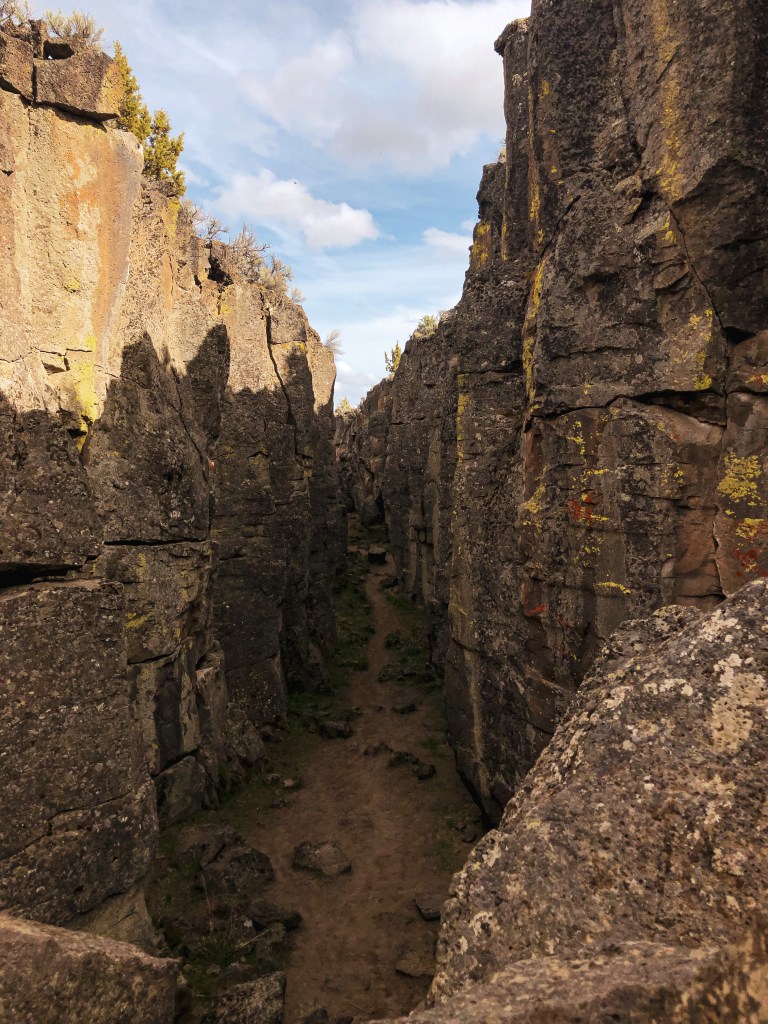 We woke up Saturday with a plan to make a day trip to Fort Rock, Green Mountain, and Crack in the Ground. We headed out of the Deschutes NF via NF-18 passing Cabin Lake Guard Station and made our first stop at the Fort Rock State Natural Area. This large semi-circle rock that now sits in Oregon’s high desert used to be an island in what was once a shallow sea. The oldest sandals dating back to 9,000-13,000 years old were discovered in this area. We hiked the short loop around the rock before moving on. We had to make an unexpected pit stop in Christmas Valley for gas and propane. For some reason our propane connection to our larger propane tank wasn’t working when we tried to make breakfast that morning. We had a half used disposable Coleman propane bottle that got the job done but it wouldn’t last us the remainder of the trip. We were relieved to find Christmas Valley was stocked with both despite one of the stores mentioning a supply shortage. Crisis averted. Just outside of Christmas Valley is a scenic byway aptly named Crack in the Ground Road that takes you directly to Green Mountain and Crack in the Ground. It is a rough and bumpy road but should be passable to most vehicles with caution. We drove past Crack in the Ground to Green Mountain Campground first. The small primitive campground is situated at the base of the lookout. From there it is only a few hundred feet up to the lookout. It was locked behind a barbed wire gate and still closed for the season. You still get a pretty good view from just the base. There were only a couple people camping in the campground, so we used one of the picnic tables for our lunch. On our way back out towards Christmas Valley we stopped at Crack in the Ground. This hike takes you through an old volcanic fissure that is roughly 2 miles long. We were running out of day again so we only went part way into the crack before heading back to camp.