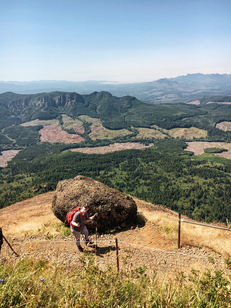 The top of Saddle Mountain offers expansive views from the Pacific Ocean all the way to Mt Hood. It is no question why they would want to have a lookout on this summit. The trail switchbacks through an old growth forest until you reach the last push up the rocky slope. Parts of the trail are covered in mesh wiring to help with erosion and traction. It is a steep 1,640′ gain in elevation over 2.5 miles to the summit. Saddle Mountain was established as a fire camp in 1913 with a log cabin situated below the summit. In 1920, a frame cabin with observation platform was built. It was replaced in 1953 by a 2-story live-in cabin. The lookout structure was destroyed in 1966. I have been on this summit a few different times but didn’t take the time to look for any remnants of foundation.