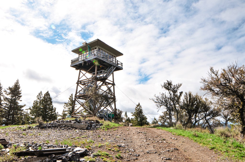 Antelope Mountain L.O. was first established in 1930 when a 30′ tower and L-4 gable roofed cab. This original lookout was unique in that it didn’t have a catwalk. A 16’x18′ garage was constructed on the summit in 1934. An inspection of this lookout was done in 1966 which found many deficiencies that needed repair or replacement. In 1974, the Forest Service put out a bid for work to move the lookout structure from Lake Butte to Antelope Mountain and remove the existing. The lookout on Lake Butte was a 16’x16′ R-6 flat top cab with catwalk and 31′ tower. The work was awarded to the Emert Industrial Corp from Clackamas, OR. They were able to complete this work in the fall of 1974 by loading the tower on a lowboy and the house on a flatbed truck. They used an 80′ boom truck to lift the house back on the tower once they reached Antelope Mountain. The pictures from relocations are some of my favorites from the archives online. Nothing looks quite as out of place as a fully intact lookout cab on the back of a small truck. Antelope Mountain continues to be staffed every summer due to it being one of the most southern lookouts in the Malheur NF that covers the driest portions of the district.