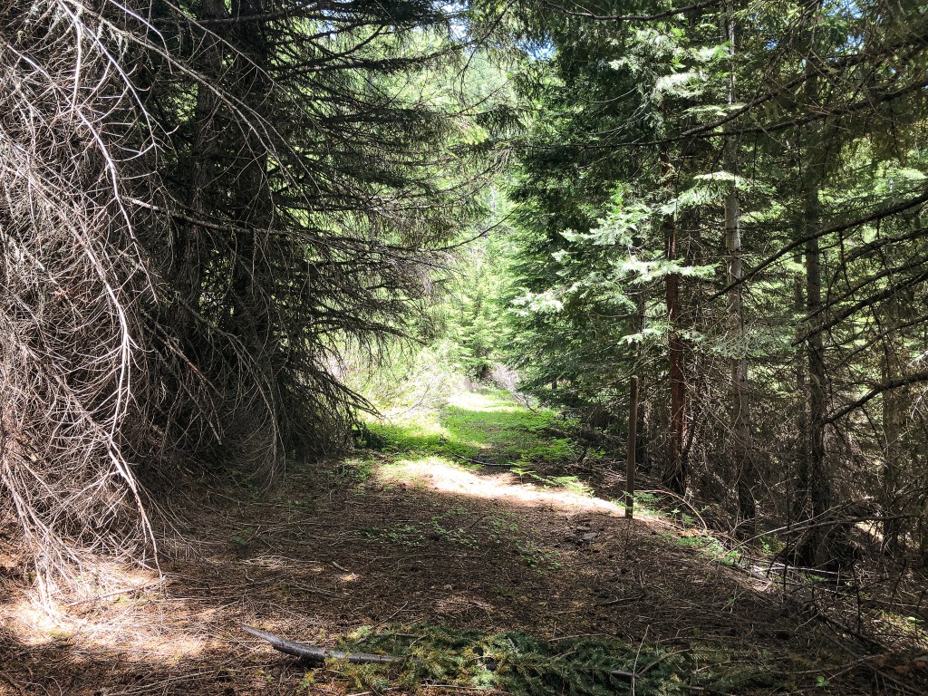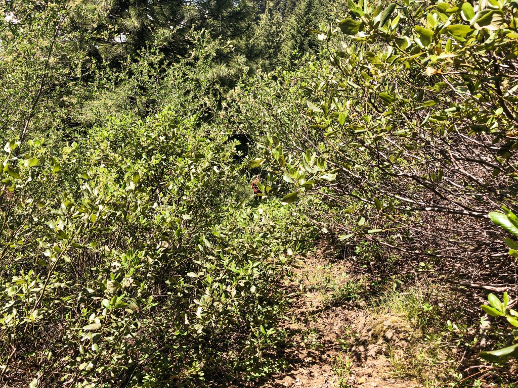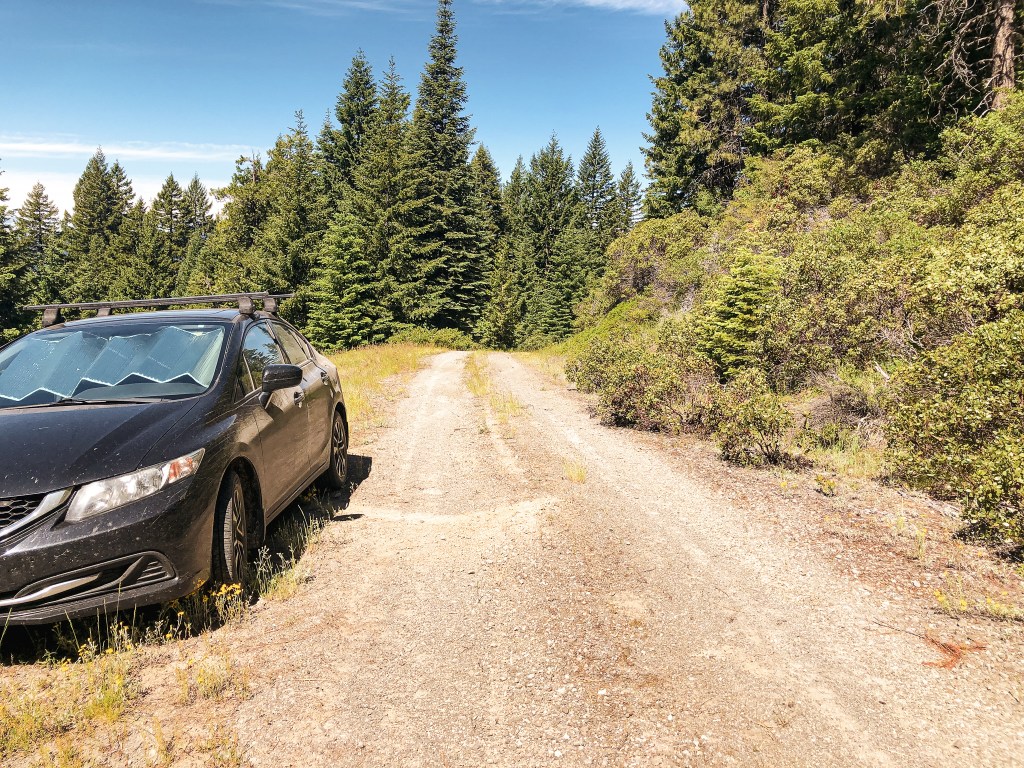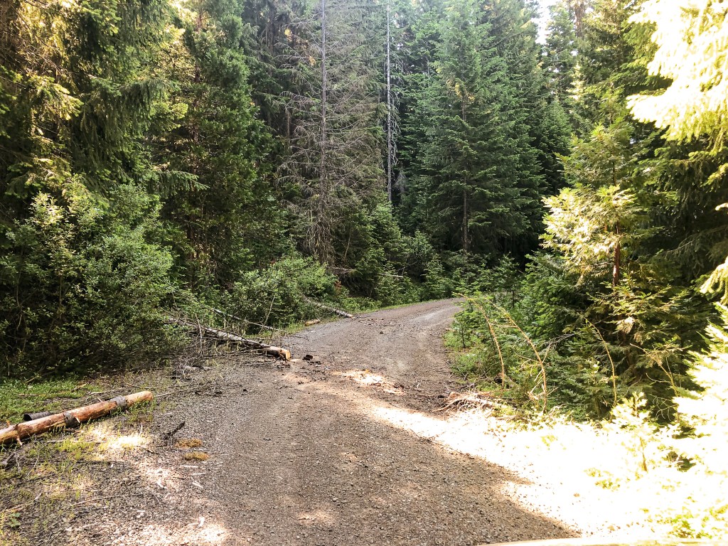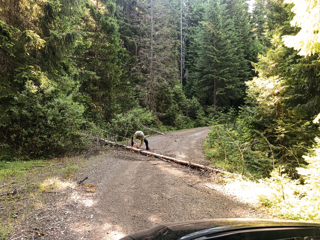From NF-100, we turned on the first road off to the right. This is the NF-150 spur and does have a sign. We were slightly worried about the roads after seeing the condition of the Mowich Loop Road. The rest of the route was along three number spurs and we hoped we would be able to get close enough to make the hike. We were pleasantly surprised to find the three number roads were in better condition. The only road hazards we met along NF-150 were downed trees. Some of the trees were already cleared by tree cutters, but some were not. We had a buck saw with us and decided to do some road maintenance for the Forest Service. And by we, I mean my partner. I helped clear the area once the trees had been cut though. NF-150 eventually leads to a odd 5-way junction at the Watson Saddle. On the topo map, the road we wanted was labeled NF-164. Based on the directions from the Forest Service, you should take the road farthest to the right. Most of the roads at the junction are not marked though. We were able to find an NF-170 road marker on the road farthest to the right. This was confusing to us since it didn’t match the road numbers on the map and NF-170 should be off to the left. But, It did look like the road most traveled and was farthest off to the right as the Forest Service had recommended. We headed up NF-170 to the right until we were met with a section that started to get brushy. This made us second guess our decision and we headed back to the odd junction. We walked around the junction looking for any confirmation that NF-170 was the correct road. Eventually, we gave up and drove back up NF-170 to the brushy section. We parked in a pull out on the exposed portion of the road just past the brush and decided to start walking.
