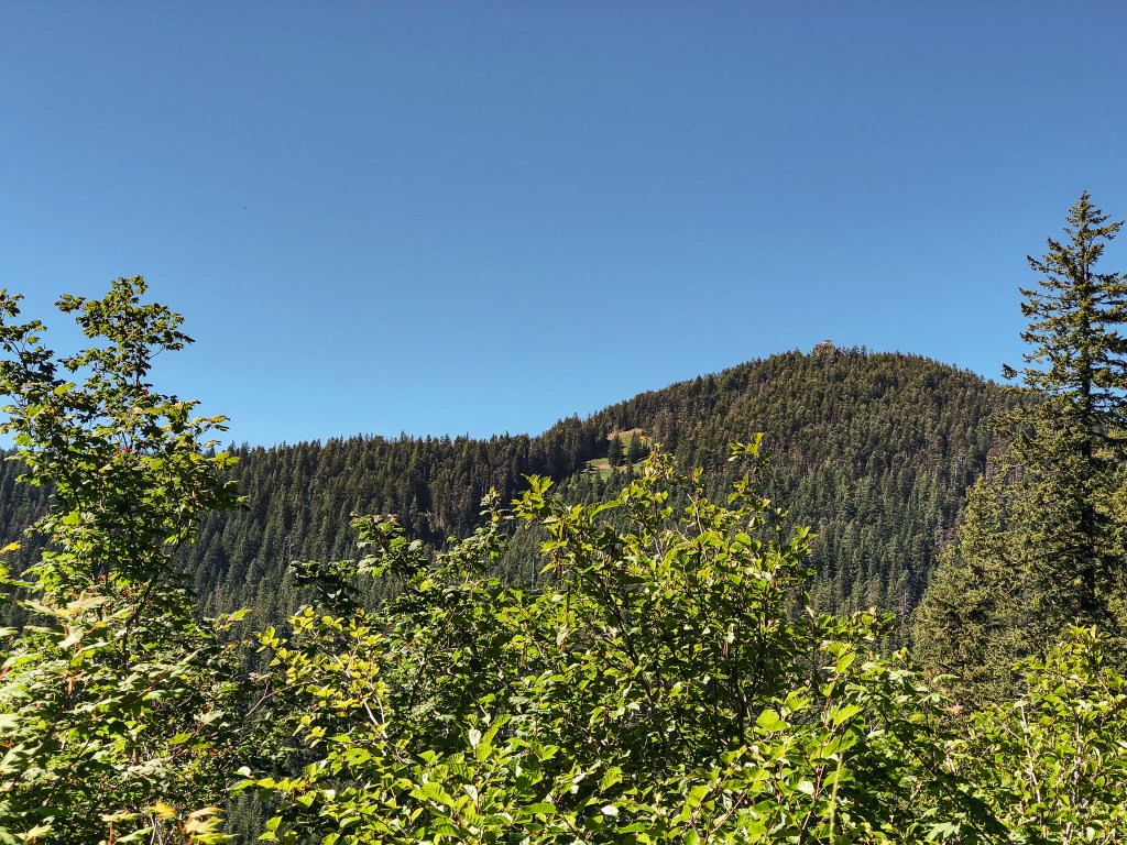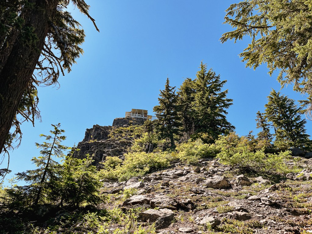 That being said, we left Portland mid-morning with a packed car headed down I-5 towards HWY-126. From HWY-126, we turned into the forest on NF-15 just past the community of Blue River. We stayed on this road until we reached the Lookout Campground. There is a sign for Carpenter Mountain that states it is 13 miles away in the direction towards NF-1506. We forked right to follow the sign and enter the H.J. Andrews Experimental Forest. There are multiple junctions along this route, but all roads are marked and you will want to stay on NF-1506. The NF-1506 road starts out paved but eventually turns into well maintained gravel. We stayed on this road until we reached NF-350 off to the left. According to my odometer, it was 5.7 miles up NF-350 to the trailhead. This is a fairly decent spur road with only a few rocky spots and potholes to avoid up until the last mile. The last mile is where the road deteriorates and becomes very rocky. It was slow going in a low clearance vehicle but passable with caution. We made it to the trailhead just before 1pm. It is a short but steep one mile hike to the fire lookout. You will gain over 800′ in elevation. It was shaded most of the way which offered a nice reprieve from the heat.
