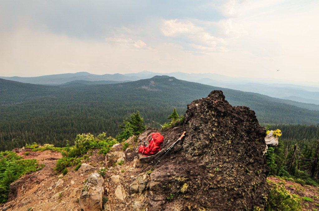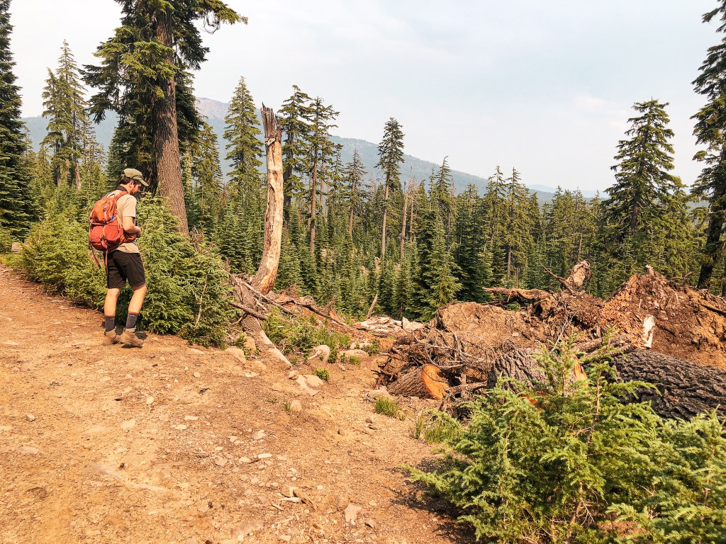Oregon has been in a heat advisory for the last week with temperatures ranging in the mid to high 90s. It even briefly jump up into the low 100s a couple of those days. A haze was expected to settle over all of Oregon for the weekend due to a new wildfire in northern California. Is it too soon to say I miss the rain? Anyway, what better time to head into the forest than when you’re sweltering at home? It turns out it’s pretty hot out there too. But, my partner and I headed on as we always do. This weekend we set our sights on Garwood Butte. We figured we could do The Watchman (post) or Mount Stella (post) while in the area too. Yes, both were also an option. It’s a bit of a drive for a one-night trip, but we’ve come to the conclusion that we’re a bit crazy. Garwood Butte has been on our minds for a while. Mostly, because my partner’s name is Garnet and he goes by Gar on occasion. I couldn’t possibly visit Garwood without him. For this reason alone, we felt a connection to the fire lookout. It’s also just a really cute L-4 perched on top of a rocky outcropping with views towards Mount Bailey and the Crater Lake rim. What’s not to love about that? We had originally thought about adding it to our road trip itinerary, but were worried about the potential for snow. After our visit to Pig Iron (post), we could see it was snow free and that it would be accessible for a future visit to the area this year.