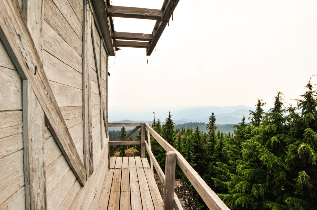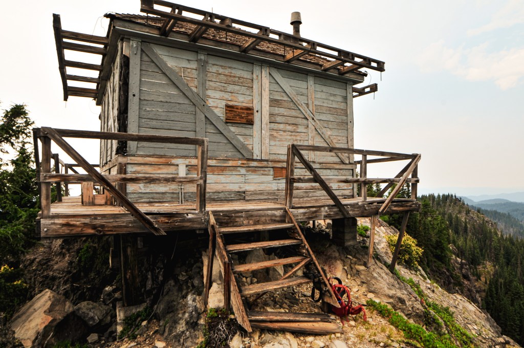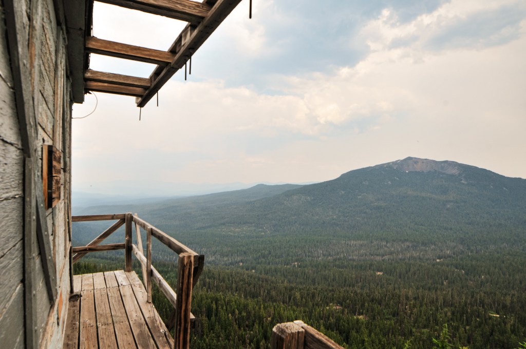 Formerly known as Bear Butte, it was renamed to Garwood Butte in 1946 to commemorate Leroy E. Garwood. Leroy was a former Forest Service District Ranger that died in March 1944. He was known as an old-timer on the forest and was the first to develop the lookout station atop the butte. The renaming also helped to eliminate another “bear” named feature within the forest. At the time the following features included the name bear; 6 Bear Creeks, 2 Bear Buttes, 2 Bear Camps, 1 Bear Bluff, 1 Bear Bones, 1 Bear Gulch, 1 Bear Lake, 1 Bear Wallows, 1 Bear Trap Mountain, and 2 Bear Mountains. Not the most creative. The structure on Garwood Butte was built in 1942 as a 14’x14′ L-4 ground cab. It was last staffed in 1973 and has since been abandoned. In 2012, the lookout was threatened by a nearby fire and had to be wrapped by fire fighters in Structure Protection Wrap. I believe it was the Butte Fire, but there were a few other larger fires during that year that could have caused this to be wrapped. There has been ongoing restoration work in more recent years, but it still needs a lot of work.