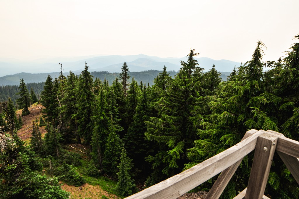 My partner reached the summit before me and was already making his rounds on the catwalk as I tried not to completely wilt away in the sun. I always seem to struggle more than him, specifically on steeper trails and in the heat. Partially, because I’m not in as good of shape but there are various other reasons as well. Garwood has a really nice summit on the edge of a rock that dropped off to views of the drainage below. The lookout structure was looking a bit worse for wear on the catwalk. Some of the stairs had broken and one corner was being supported by two boards. There was a sign posted on the cab mentioning the ongoing restoration, but I’m not sure if that is still active. Please use caution if you decide to climb the catwalk. We headed down after taking in the hazed over views and debated our next step. We had already found some decent dispersed camp spots and could have easily set up camp early to relax. But, there was also just enough time left in the day to move on to Mount Stella. We were both torn between wanting to maximize our short trip and just taking it easy for once. Who were we really kidding though? Of course, we headed on to Mount Stella (post).