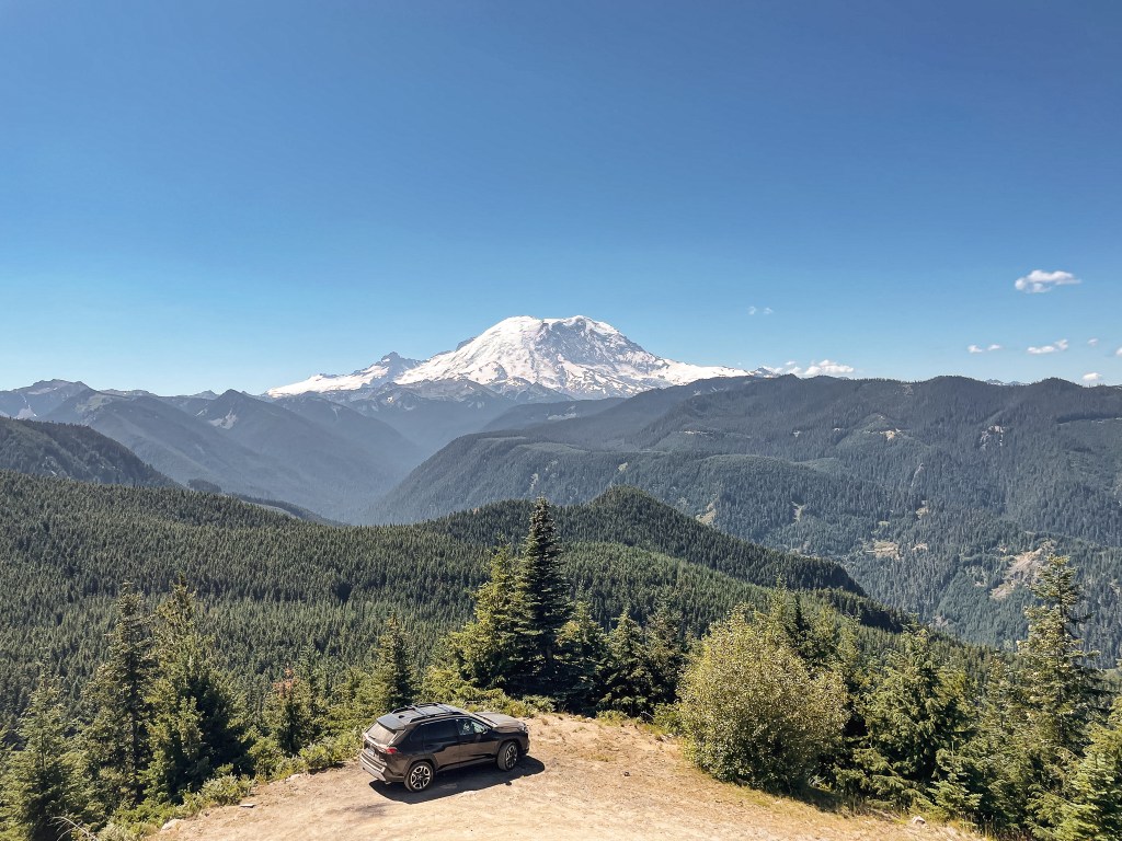 We left camp around late-morning on Saturday with a two car caravan. I made the mistake of not bringing a map or doing much research on the route needed to get there. That’s on me, but I truly didn’t think it was going to happen. Luckily, I had a vague idea on where we needed to turn from looking at the route prior to the trip and guessed correctly. From HWY-410, we headed north and turned left onto NF-73. There wasn’t a sign for this road, so it would have most likely been a guessing game regardless. We were able to get service here and confirmed the remainder of the route. We stayed on NF-73 for a little over a mile before we turned left onto NF-7315 which was signed. You will stay on NF-7315 for around 5 miles until you reach the trailhead or summit. There is a gate just past the trailhead that might be open depending on when you visit. We were able to continue past the gate since it was open and I have the luxury of friends with high-clearance vehicles. The road getting there was rough and would need caution in a low-clearance vehicle just to reach the trailhead. Past the gate the road is significantly worse, but we were able to roll around the large embedded rocks with no issues in a Toyota RAV4 and Subaru Outback. There was a sedan that had made it to the summit too, but it didn’t look like it would have been worth it. We also passed a large RV broken down in a pull out along NF-7315 which is a skinny and steep mostly single track road. A reminder that just because someone has done it doesn’t necessarily mean it’s a good idea. My partner and I always joke about meeting something like that on these back roads, but I never thought I’d actually ever see one.