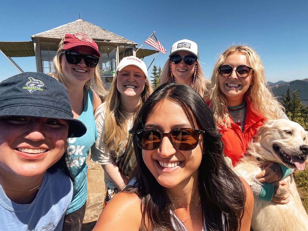 Every year I like to plan a camping trip for my friends and I, or at least for the ones that are interested in camping. It started as a tradition with my friend, Anjelica, at South Beach State Park in 2016. It was the first time we came to the realization that we could plan a camping trip without our parents. It was just us and her boyfriend at the time. In 2017, it really took on its true form as a girls trip when two more friends joined us. During that trip, on a hike, there was a trail sign that someone had carved in the words “Lost Boys” and the year they were there. We joked that we were now considered the Lost Girls. Since then our little group of four has managed to go camping every year (minus a year for the Pandemic) and we still jokingly refer to ourselves as the Lost Girls. I always try and pick somewhere new for us to explore when planning. It generally ends up being in central or northern portions of Washington since we are split between Portland and Seattle. This year was a bit different since we had two more friends and three dogs joining us. The campground I picked this year, Silver Springs, was in the Mt. Baker-Snoqualmie NF and close to plenty of recreation opportunities. I didn’t expect to explore as much as we usually do just based on the logistics of getting us all around. Traveling with dogs immediately cuts out any trail options in the National Park too. Out of curiosity, I decided to look at the potential fire lookouts in the area. I saw we were really close to Suntop, which is just outside of the National Park with a great view of Mount Rainier. I recommended it to my friends who all seemed to be down. Step one in slowly tricking my friends into going to fire lookouts. I was still skeptical we’d be able to round up everyone for the caravan and short hike though. But, even after we all made it to camp they seemed motivated to make it happen. Not that any of them read this blog, but thanks friends!