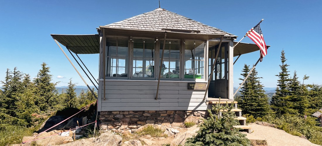 Suntop was built in 1933 as a 14’x14′ L-4 ground cab. It is one of two remaining lookouts of its kind on the Snoqualmie NF. It was used for the Aircraft Warning Service from 1942 to 1943 during World War II. An access road wasn’t built to the summit until 1956. Although the same structure still stands today, it was refurbished in 1989. It is still staffed on a volunteer basis through the Forest Service.