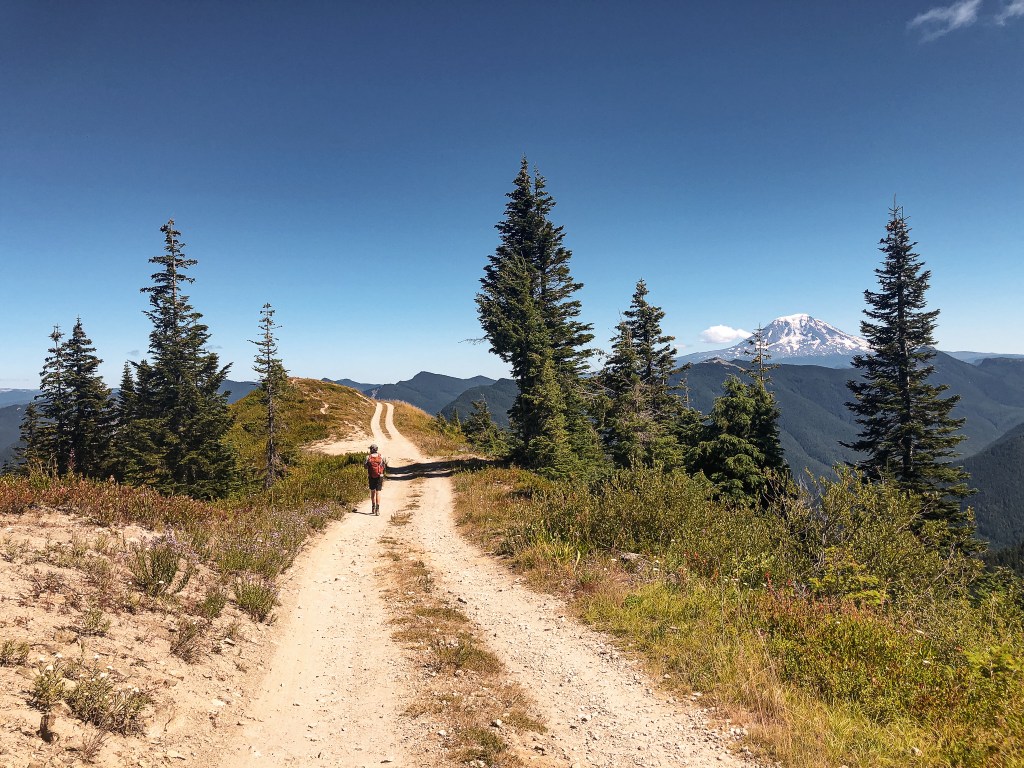 My partner and I weren’t as motivated to get up this morning. We planned to head to Burley Mountain as a day trip since I had family obligations on Sunday. This definitely would have been better for an overnight trip, but it’s doable as a really long day. We hit snooze a few times before grumbling out of bed around 8AM. After getting ourselves in order, we were able to get on the road before 9AM. We headed north on I-5 into Washington until it met up with HWY-12. The section of HWY-12 from I-5 to Packwood provides great access to different recreation opportunities in Central Washington. I’ve used this same highway to access Suntop Mountain L.O., Shriner Peak L.O., and some other trips not mentioned on the blog. This time we stayed on HWY-12 until we reached the community of Randle. We turned right onto Cispus Road which also starts out as HWY-131. Shortly after crossing a bridge you will want to bear left to diverge from HWY-131 and stay on Cispus Road. We stayed on Cispus Road until we reached the Cispus Learning Center. There were a few needed turns to stay on the right road but all were marked with a sign. You can either park at the trailhead here for a 14 mile RT hike via the Covel Creek Trail or continue past to attempt a drive up. I’ve read the trail is riddled with dead fall that can be difficult to navigate. We opted to attempt a drive up to get as close as possible for a road walk. From the Cispus Learning Center the Cispus Road turns into NF-76. There are two different access routes from here. You can either turn left onto NF-77 or NF-7605. I read that NF-7605 is a rough high clearance only route, so we opted for NF-77 that is partially paved. There is a sign for Burley Mountain at the NF-77 junction that notes it at 16 miles away. I zeroed my odometer here.