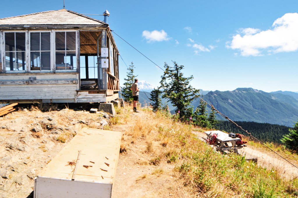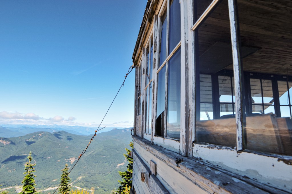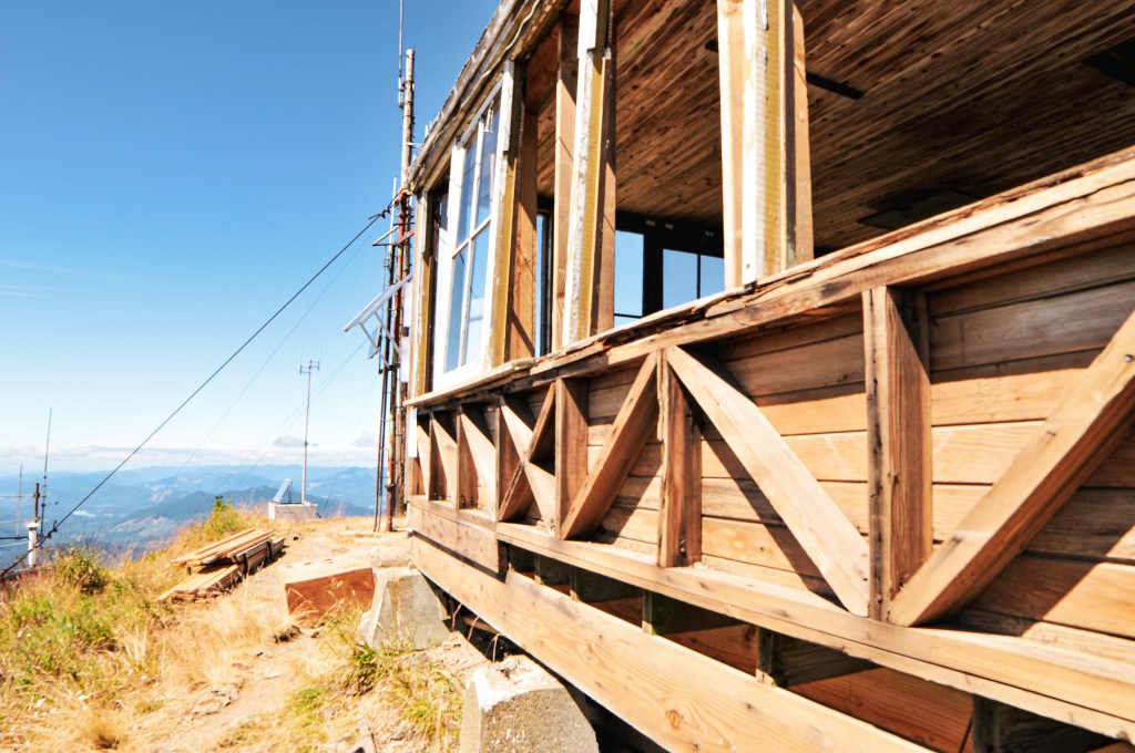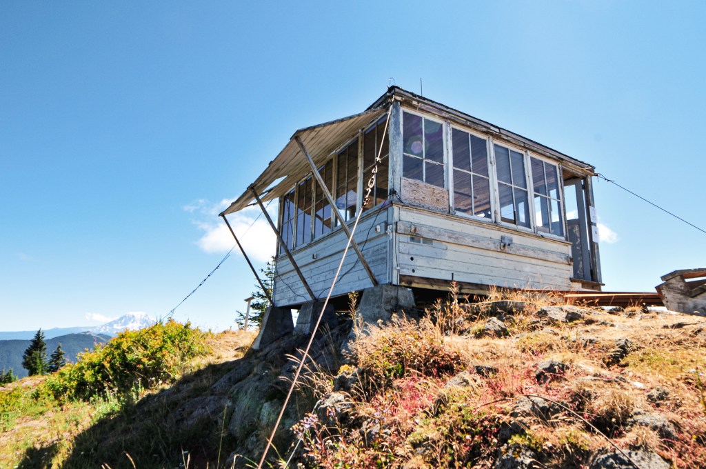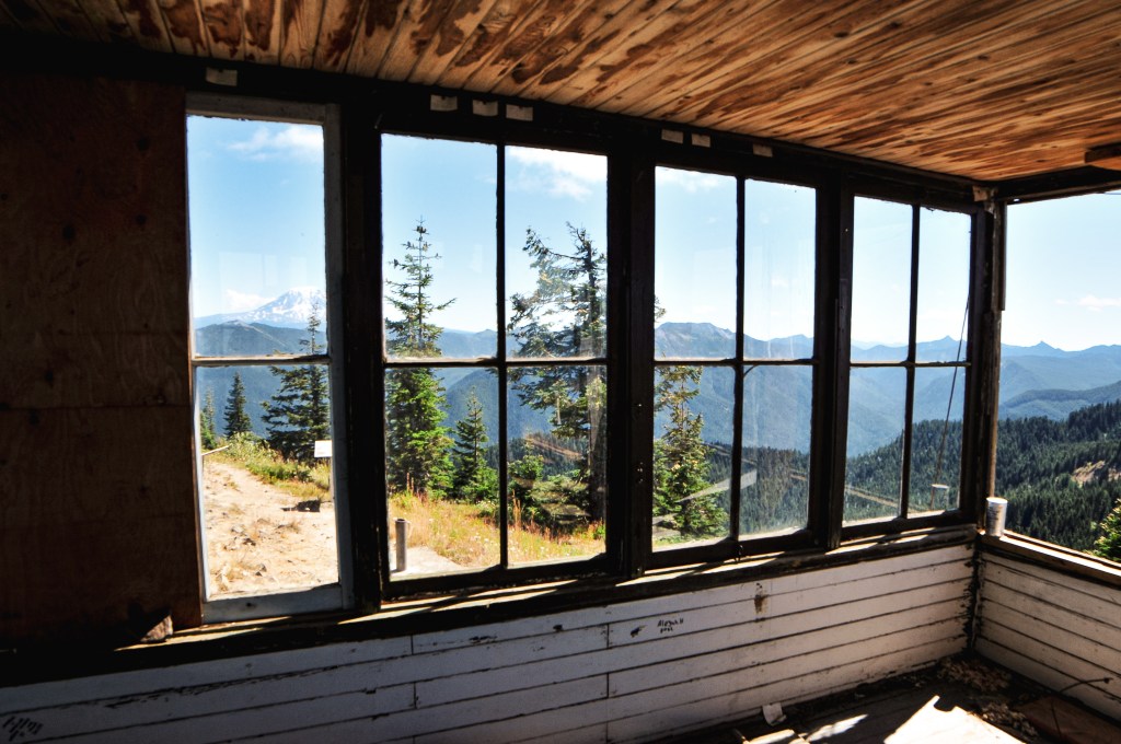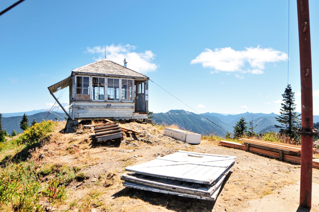 Burley Mountain started as a fire camp in the 1930s back when the forest was known as the Rainier National Forest. In 1934, a 14’x14′ L-4 ground cab was built on the summit and still stands today. It offers views to Mount Rainier, Mount Adams, Mount Saint Helens, and even Mount Hood. It was actively staffed every summer until 1974 when it was subsequently abandoned. It had been vandalized and neglected over the years, but was updated in 1984 by a group of Volunteers and Forest Service employees. The most recent restoration work was completed in 2009 by FFLA member Dick Morrison and volunteers. For a long time, it has been open to the public for first-come first-serve overnight stays. But, it seems even with the love of the community this Fire Lookout has fallen into bad shape once again. Possibly due to the popularity of the area and the ability to drive up. The Forest Service has taken restoration work into their hands once again to potentially add this on to their rental program. We will see if their venture is successful. I’d personally recommend adding a gate.