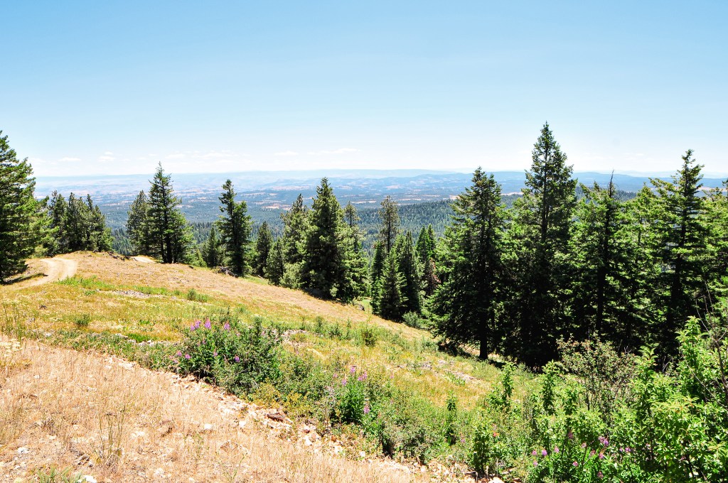 From Ukiah, we headed west on HWY-244 to cross HWY-395 into the Umatilla NF via NF-53. This starts out as a county road before entering the forest, but I don’t recall seeing a sign with a road name. There was a road construction sign at the junction noting they were doing a chip seal on this road and to expect delays. We seemed to be hitting all the activity this trip with work around the fire lookouts or on the roads getting there. Luckily, this time we missed the crews working on the road or they had already completed most of the work when we drove through. The NF-53 road is paved all the way to the junction with NF-21 and is in good condition. We turned left to continue on NF-21 which winds its way in and out of drainages. This was made up of good gravel and took us past the rentable Ditch Creek guard station and the staffed Tupper work center. Our plan was to camp in the area and hike the trail to Madison Butte the following day. Madison Butte can be accessed via a road as well from a completely different direction, but I believe it is seasonally gated and in terrible condition. Garnet’s dad mentioned the road getting there was not great years ago when he had been there and we were inclined to believe it hadn’t improved. Our biggest concern would be the conditions of the trail instead. Upon setting up camp, we came to the conclusion we wouldn’t have to move camps for the first time this trip. We had buffered an entire day for Madison Butte and since we were already in the area there was no need to move camps for 2 nights. The only stops we had left on our itinerary (after Madison Butte, of course!) were Tamarack (post) and Ant Hill (post), both easily accessible and close to each other.