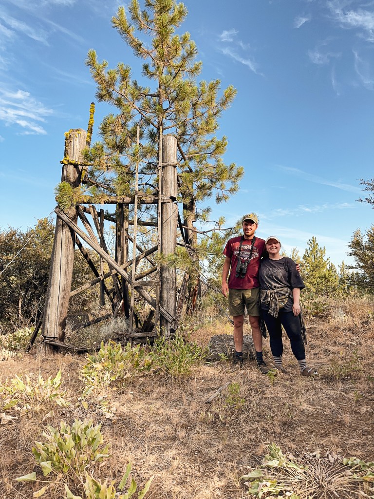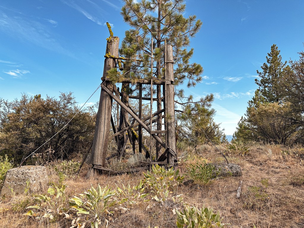 The first lookout structure was built on the summit in 1935. It was a pole timber tower between 16′ to 24′ with an L-4 cab. I’m unsure of the exact height. It is listed on the Former Fire Lookout Site register due to the tower being dismantled and removed in 1956. I personally would consider this an existing lookout site due to the 10′ open platform tower that still stands today. There is no information on when this structure was built or if it was utilized for fire detection. The only mention of it I could find was on the geocache site. It states this structure was built from recycled material of the previous lookout. It reminds me of the lookout structures utilized on Green Butte (post) and Craft Point (post).