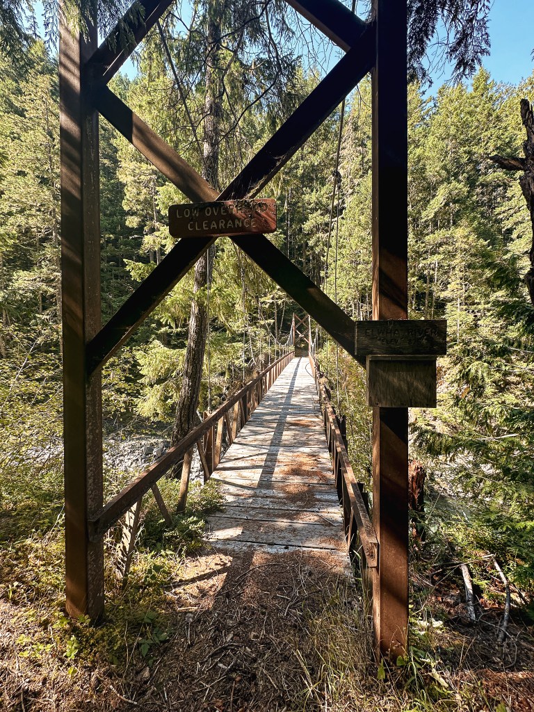 We didn’t set an alarm for the morning and didn’t attempt to wake up any earlier than we normally would while camping. This probably wasn’t our best call, but today was going to be an uphill marathon not a sprint. My joints were still stiff from the day prior and I hoped I’d be able to make it all the way. I decided to get a head start on Garnet since I had finished repacking my bag before he was ready. I headed back up the steep little trail we came down yesterday until I met up with the fork that was signed for Dodge Point. I turned right to continue on this trail. I could tell no one had been this way in the last day or two due to the amount of cobwebs that greeted my face. After hiking for a mile I came to another junction pointing back to Humes Ranch. I cursed myself for not looking closer for a cut off trail while in camp the day prior and made a note to take it on the way back. I had known all the trails around Humes Ranch interconnected, I just hadn’t known where it ended and began. I wasn’t completely sure how much mileage this would have cut off, but it would have definitely saved some back tracking and unnecessary elevation gain. I debated whether to wait at this junction for Garnet or not, but shortly became worried he might already be ahead of me if he found this junction from camp. I continued on since there were still many more miles to be seen for the day and Garnet would catch up soon enough. The trail had been mostly in good condition until it started to turn back towards the Elwha River where signs of erosion have crept in. One particular section of note was only a short distance but barely wider than my foot. In a more exposed rockier section you could tell where the land had slid and users had reworked their own trail over the moved debris. Both of these sections made me a bit uneasy knowing I was barely over a mile into our hike for the day; what other obstacles lie ahead? would the suspension bridge still be there? and why hadn’t Garnet caught up yet?