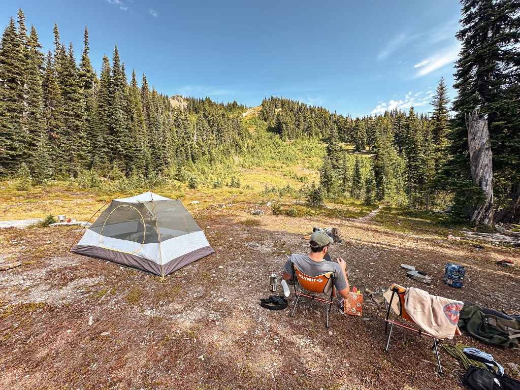Prior to leaving for the weekend, I hadn’t seen any other permits taken out for Dodger Point. We knew it was still a possibility that we might see someone, but it felt unlikely given that we hadn’t seen a soul since we left the paved road on Friday. That’s why it was a shock to see someone show up in camp without a pack on. It was just a girl and she was asking if there was a water source nearby to which we had to inform her of our water carry. The tarns below camp would be her best option if she didn’t want to hike back 2-1/2 miles to the spring. After talking with her for a bit, her hiking partner joined us in camp seeking the same answer. They both didn’t have packs on which we can only assume they dropped back on the trail to scope around for water. We asked them where they had come from and if they were camping here for the night. It seemed like the most logical assumption since they came up from Humes Ranch. When he responded he seemed unsure of where they planned to camp. Their “route” headed toward Ludden Peak and would hopefully loop back via the Olympic Hot Springs road. I was confused by this initially since there was no mapped trail in the direction he mentioned. We wished them luck on their trip as they headed out into the afternoon. Once back in cell service I was able to find the route he was describing known as the Bailey Range Traverse. Let’s just say they were on a much more extreme wilderness experience than I would prefer and I hope they made it through without issues. I’m not sure how the permitting works for those kind of routes either.