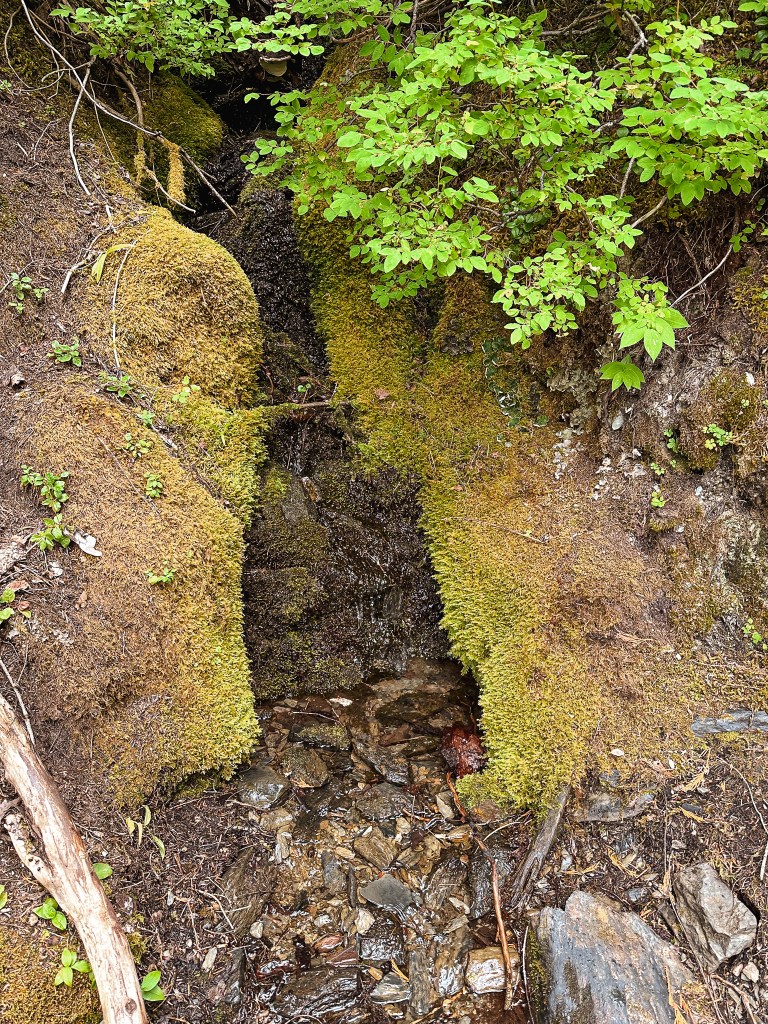 Dramatics aside, this piece of misinformation really added to how long the ridge felt. There comes a point in the trail where you can start to see out beyond the trees. This unfortunately didn’t help with our perceived length of the trail either as we thought our destination grew closer only to turn the corner and find more ridge. I knew this late in the season we would have to find a water source prior to camp and water carry for a least a couple of miles. I was unsure of the exact location of the recommended water source and thinking that we were closer than we actually were made me worried when we came upon the first water source. It was barely a drip of a spring with a mildly murky pool that didn’t replenish fast enough to fill all of our water containers. We took what we could and hoped for a better source along the way. Luckily, we found a few better sources roughly between 8.3 to 8.8 miles into the hike. We ended up dumping the murky water we had and replacing it once clearer sources were found. We were also able to fill the remainder of our containers with these sources. We each had two 32oz Nalgene bottles, along with my 3L water filter, and a plastic gallon jug. The goal was to bring enough water to support us for the next two nights until we could return to these sources on the way out. We cursed a bit for being too proactive as we came to the best and most reliable water source at 9.7 miles into the hike. This was the one I had seen recommended previously on someone else’s trip report. Their report mentioned it was around 2-1/2 miles from the camp which is accurate. Unfortunately, given that I thought we only had to hike 10-1/2 miles, the water sources back at the 8-1/5 mile made sense to me. We decided it didn’t hurt to replenish our water again and topped everything off for the last time. It was roughly 6:45PM now.