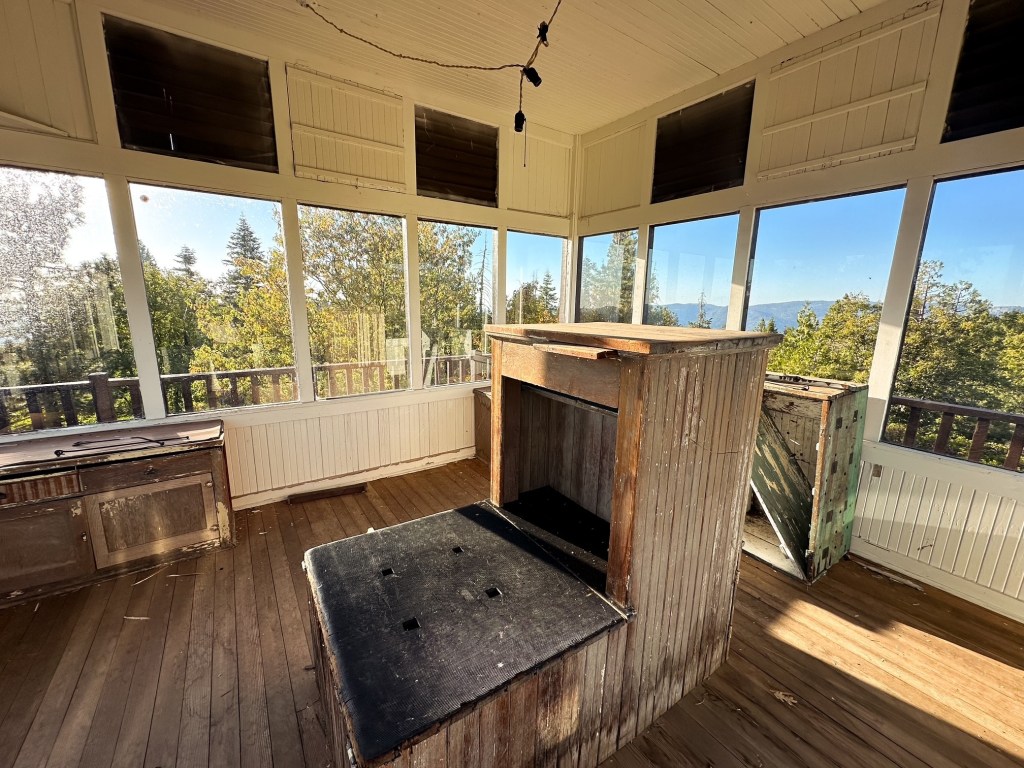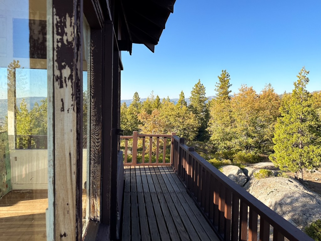 Henness Ridge was the second fire lookout built in Yosemite National Park by the CCC in 1934. It is a 3-story rustic National Park style lookout with a 13’x13′ cab and catwalk on top. The first level was used for garage and storage while the second level was the living quarters. The site was actively staffed into the 1980s. Some note it for possible emergency use by the park, but I believe it stands more as an exhibit to what once was here.