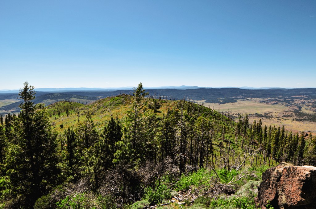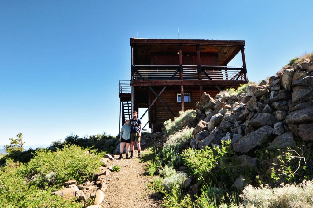From the gate, it is another mile of road walking to the lookout. This was a pleasant morning walk to the summit. The road starts to open up to views before you reach the lookout and is lined with a variety of trees. We were able to locate White Bark, Ponderosa, and Lodgepole Pine. When we reached the summit we could hear the lookout attendant talking to someone on the phone. We figured Ed mentioned to them that we would be visiting, but didn’t want to assume at the same time. We decided to take photos around the base of the lookout and take in the view while we waited. Eventually, the lookout attendant was finished with their call and came out on the catwalk to greet us. Similar to our interaction on Sugarpine (post), he asked if Ed sent us and we asked if he was Ron. It felt like we were getting passed along on a fun field trip of the area from one lookout attendant to the next. Ron invited us to join him on the catwalk and gave us a brief history of the tower. He was very gregarious and had a lot of knowledge about the surrounding forest. He mentioned he had just wrote a book about forest management and its relationship with fires. It’s called Axe-It First (link). This is why he was on the phone when we arrived. It was published that morning and he had been thanking those that assisted him in the process. We all talked for a long time, 2 hours to be exact, about our current state of things and what needs to change for things to get better. He realized quickly he was preaching to the choir. Ron had many stories to share and was happy to share them with us. So much so that it was hard to find a break in the conversation to even leave. His wife eventually called him and he had to step away to answer. We thanked him for his time and said our good-byes. We wanted to visit for longer, but we knew we needed to keep moving if we wanted to make it to Walker Mountain (post) and the Umpqua NF.