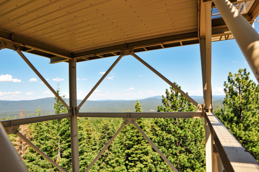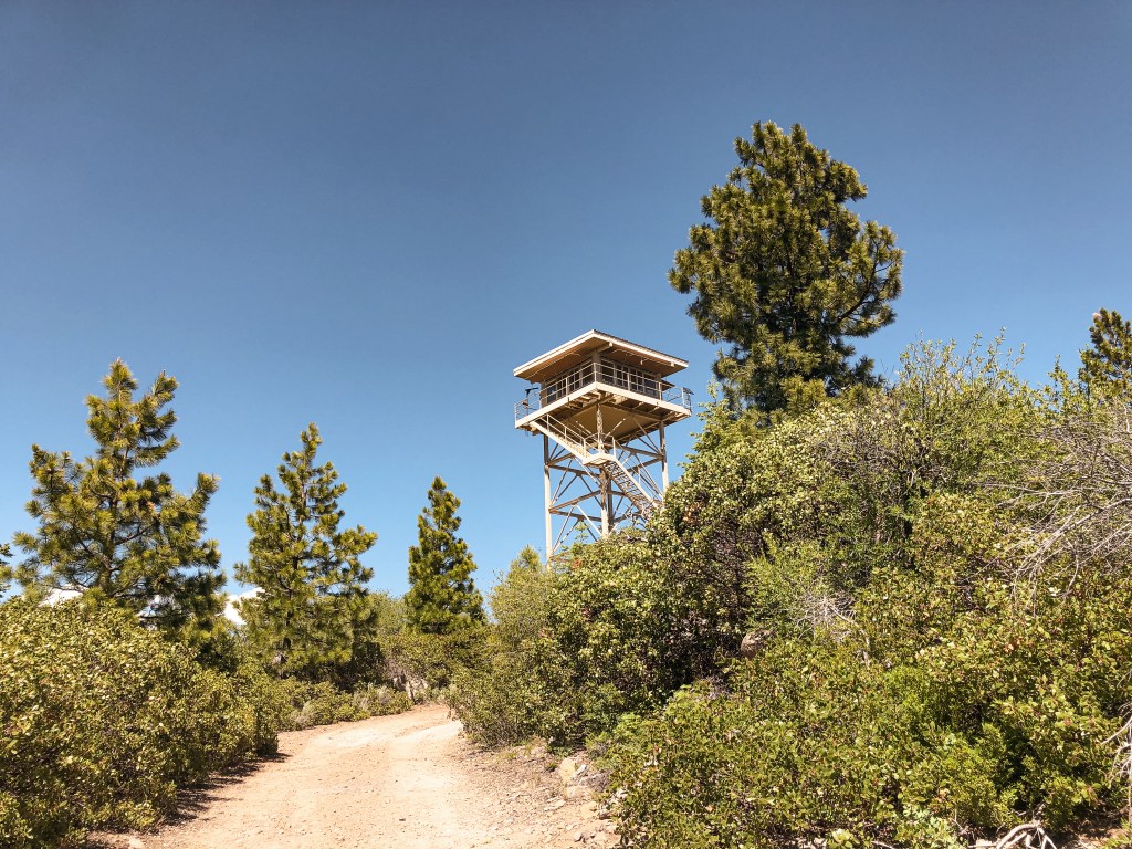 There wasn’t much to note about the road walk to the summit except that it was too hot and dry for early May. I feel like we’re gearing up for a terrible fire season this year *narrator: a terrible fire season indeed*. This entire spring has been lacking what Oregon is best known for, rain. There was a pretty display of California Poppies lining the road. I even found signs of an old gate that was probably used back when the fire lookout was staffed. The final spur to the fire lookout was off to the right while the main road continued straight. Despite being a short hike, I was struggling in the heat by the time I reached the base of the tower. I waved to the fairly new looking camera and headed for a spot in the shade of the tower. A new lock had been added to the trap door to keep visitors from accessing the catwalk and, more importantly, to keep them away from the fancy equipment. The view was pretty much the same from the base of the tower anyway. I found this lookout and summit to be accurately named. It does have a uniquely repurposed base to add interest though. We didn’t linger for too long since we still wanted to visit the lookout at the Tiller Ranger station and get settled at Pickett Butte for the night. All the roads getting here were good pavement or decent gravel and we had no issues in our Civic. The hike along the road came in at 1.75 miles RT with 472′ of elevation gain on the Strava App.