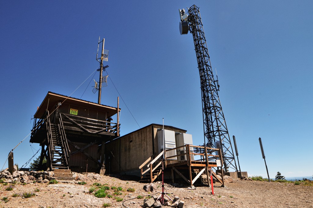Bland Mountain was established as a fire detection site in 1942 with a tent camp. The first tower was built in 1947 as a 20′ treated timber tower with 14’x14′ cab. The NHLR notes it as being a 25′ tower. The base was replaced in 1996 by a 20′ tapered metal tower that was formerly used to support a water tank. It was actively staffed up until the late 2000s, but has since been abandoned. It’s most likely still listed for emergency status. A camera has been added to the cab for surveillance of the area.