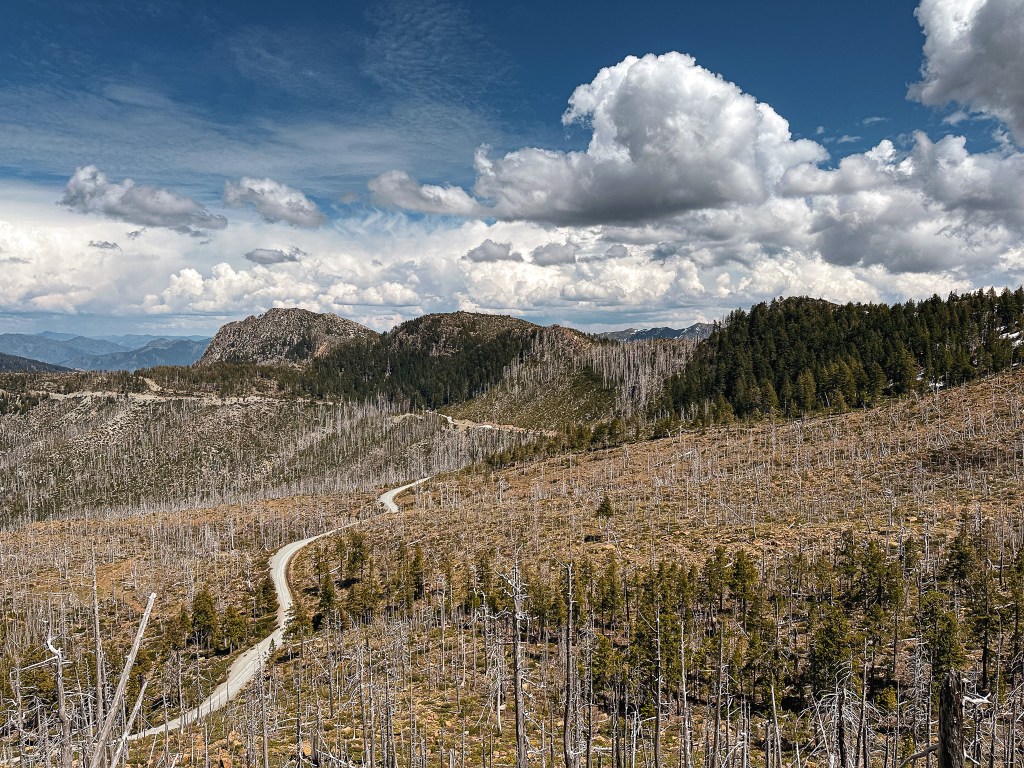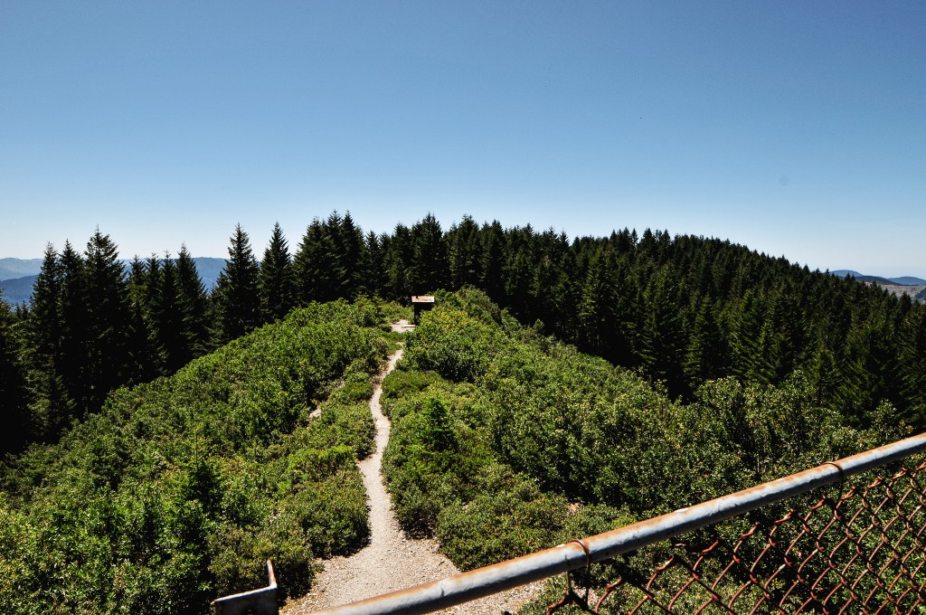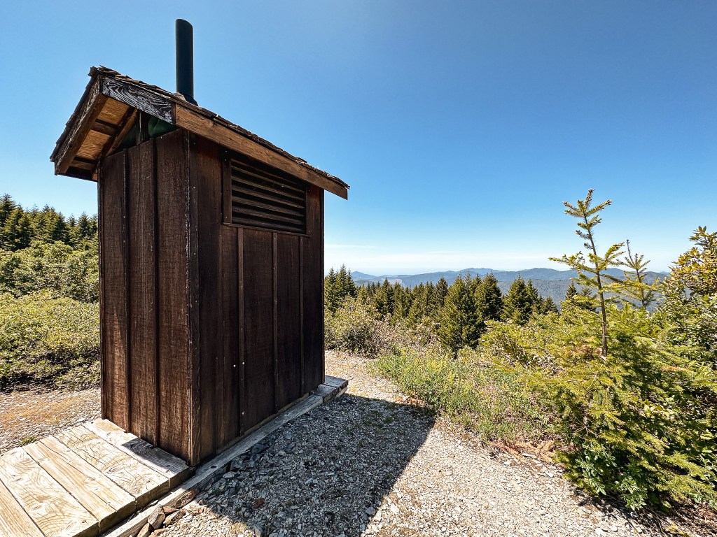 The family of four made it to the summit shortly after we started our lunch. We briefly spoke to the grandparent of the group. They were locals from Agness and visited this fire lookout on occasion. She mentioned it hasn’t been rented out the past couple of years due to the Pandemic and she didn’t think it was being rented out this season either. But, the listing on Recreation.gov seems to be completely booked out for the season. The ranger we spoke with in Gold Beach also mentioned there would be renters here this weekend. I felt better about our decision to drive up via the NF-3336 road knowing they were locals and had came up the same route. They didn’t have much with them, besides a diet coke and an empty Gatorade bottle, and didn’t stay very long before heading back. We took our time before following suit. We hung a left to continue North on NF-33 towards Bald Knob L.O. after making it back down NF-3336. We still needed to find a camp for the night and hoped there would be something along our route.