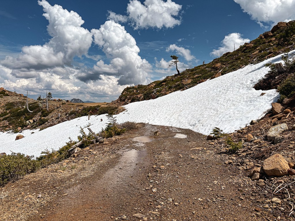 After the fiasco with the NF-3340 road, I let my partner take over the driving on NF-3336. This road seemed to be better from the start. But, don’t get me wrong, this is not a great road either. For the next 8 miles, I stressed and moaned as Garnet maneuvered around large dips where the very narrow windy road was beginning to wash out. Let’s just say I’m not the best as a passenger. The pull outs were essentially non-existent and we were happy we didn’t meet any oncoming traffic. We did make it all the way to the five way junction though. The NF-141 road to the lookout is signed and gated. If we had followed the actual directions from the Recreation.gov site, the road would have been paved all the way to this junction. Though pavement in the forest does not always equate to better road conditions. I have a feeling it is probably better than the route we ended up on though. The gate to the road was unlocked during our visit. Out of respect for the potential renters, we decided to walk the remaining distance on the spur road. We parked our car in the shadiest spot we could find and started to pack a lunch for the summit. As we were locking up the car another vehicle drove up the same NF-3336 road. It was a RAV-4 which I’m sure had a much easier trip up the road. The vehicle parked near the gate and a family of four got out to start prepping for the hike as well. We had a head start on them, but I figured they might pass us on the way up. The hike up the road came in just slightly under a mile at 0.89 miles according to my Strava tracker. This made the total road walk 1.79 miles round trip from our parked car.