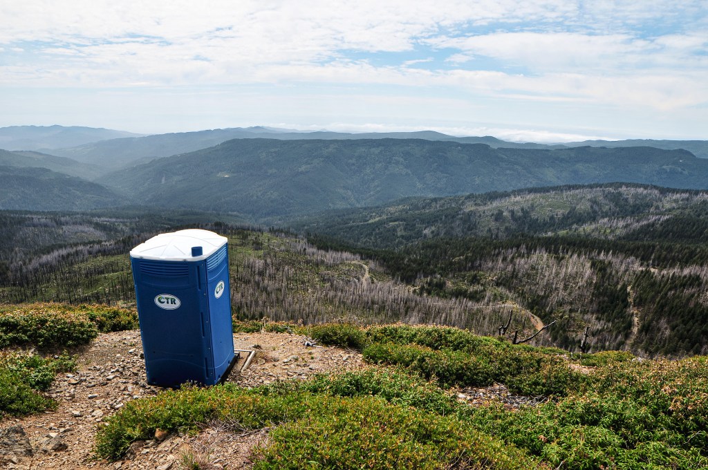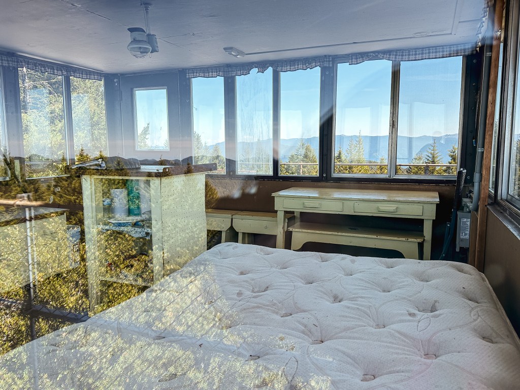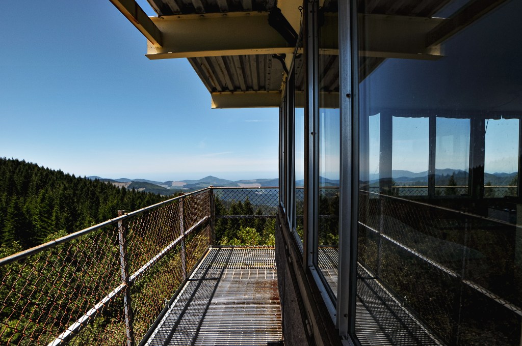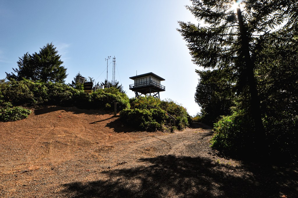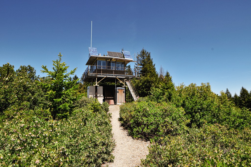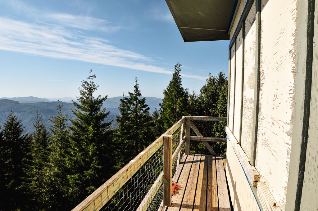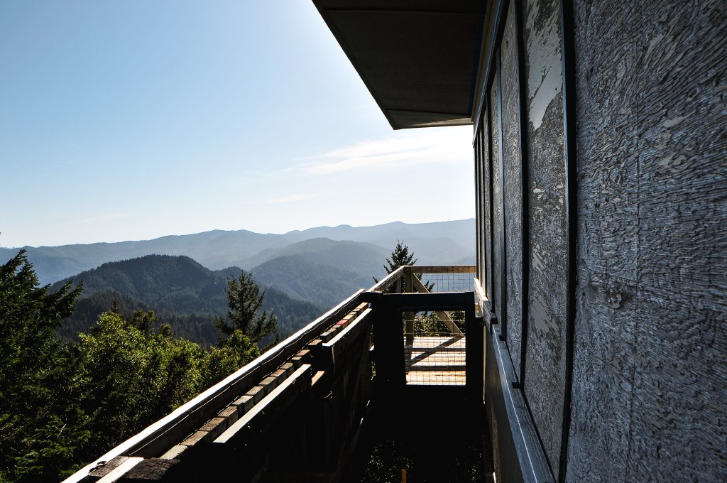 The road beyond the gate was in fairly good condition minus the final pitch towards the tower which would be hard to navigate in a lower clearance vehicle. We almost felt like we were on the wrong road as it started to head down before heading up again. It feels like a trick anytime a lookout road angles down instead of up since you’re usually aiming for the highest point. We reached the summit before the group of four. I guess the teen they had in tow slowed them down. I’m usually the slower hiker in comparison to most. There was also no vehicle here indicating that there were no renters or they had already left for the day. We quickly decided to try and get the pictures we wanted first before anyone else joined us. Afterwards we settled in to eat our lunch in the shade of the catwalk. It was too hot to sit at the picnic table directly in the sun. There was no trap door to block it off from access and luckily no renters were onsite for us to disturb. We called out a hello to double check before we climbed the tower. If there had been renters, we would have found a different lunch spot. The lookout itself might be on public land, but the structure is being rented out for private use.