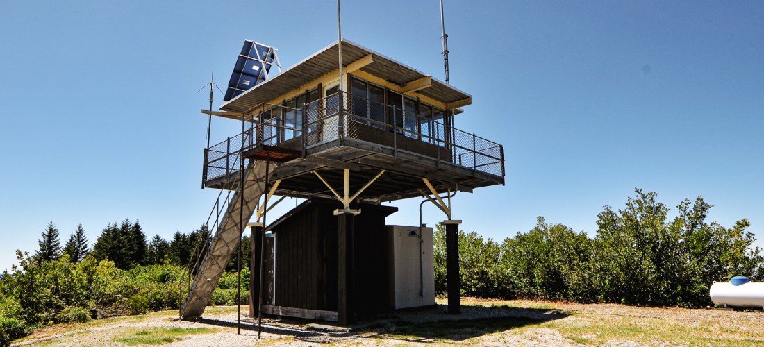 The existing tower for Lake O’ Woods was moved from the nearby Barklow Mountain in 1974. It was flown 12 miles via an air-crane helicopter that was owned and operated by the Erickson Air-Crane Company of Marysville, CA. The company was logging in the district that the lookout structure was moved to. It was set atop a 8′-12′ steel tower and had extensive remodeling done after its move. It was originally built on Barklow Mountain as a ground cabin sometime between 1955 and 1957. There seems to be conflicting information on what the steel structure is classified as though. It looks similar to a CL-100 series structure to me which is what it is noted as on Ron Kemnow’s website. The NHLR notes it as a CL-160 metal flat top while the Forest Service’s website labels it as an R6 flat-roofed cabin. It was actively staffed from 1974 until 1996. It is now apart of the rental program. Prior to this their was a 14’x14′ L-4 ground cabin built in 1933. But, the site was first used for fire detection regularly in the 1920’s. The lookout used to live in a shake cabin and would lookout from a crows nest in a fir tree on the ridge. The fire finder was mounted in the open.