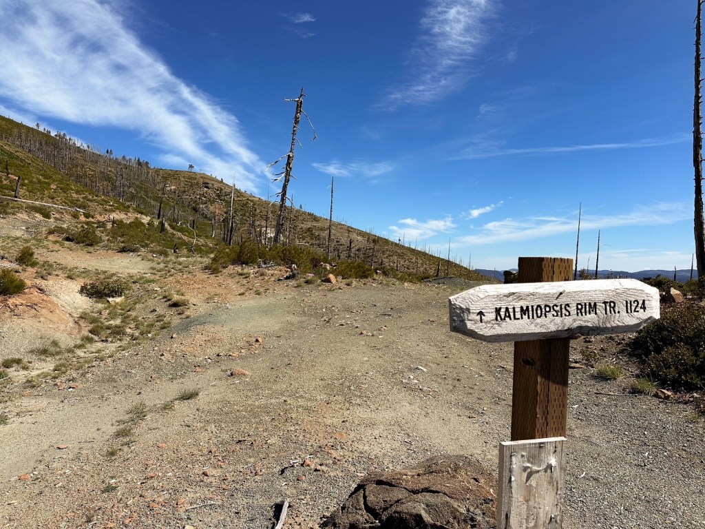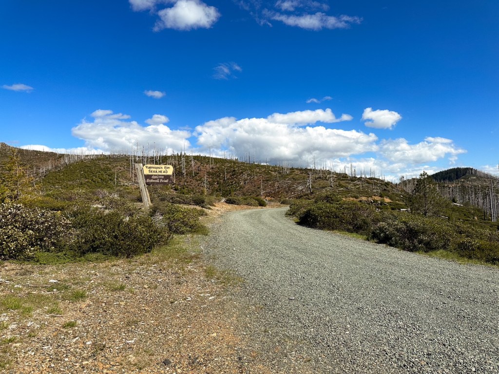 From Grants Pass, we followed HWY-199 past Selma until we reached the paved Eight Dollar Mountain Road off to the right. It’s on a curve in the highway with it’s own turn lane. If you reach the community of Kerby you have gone too far. The Eight Dollar Mountain Road narrows to a single lane beyond the gate and eventually turns into the NF-4201. It becomes gravel after crossing the bridge over the Illinois River. There are a few deep potholes in the paved section of this road but all are currently avoidable. You will stay on the NF-4201 road until you are almost to the Babyfoot Lake Trailhead. Just before you reach the Babyfoot Lake TH, you will turn right onto NF-142 and follow this to the Kalmiopsis Rim Trailhead (sometimes referred to as the Onion Camp TH). The gravel conditions are good for the majority of the drive and passable to low clearance vehicles. Some caution is required though. The last six miles has the majority of hazards as the road narrows and becomes rockier. There are some potholes and minor high lines but all are currently passable. Your biggest threat is oncoming traffic around blind corners. It is roughly 17 miles from the highway to the trailheads and there is a little less than a mile and a half between the two trailheads. The trail begins to the left of the signboard at the Kalmiopsis Rim TH.