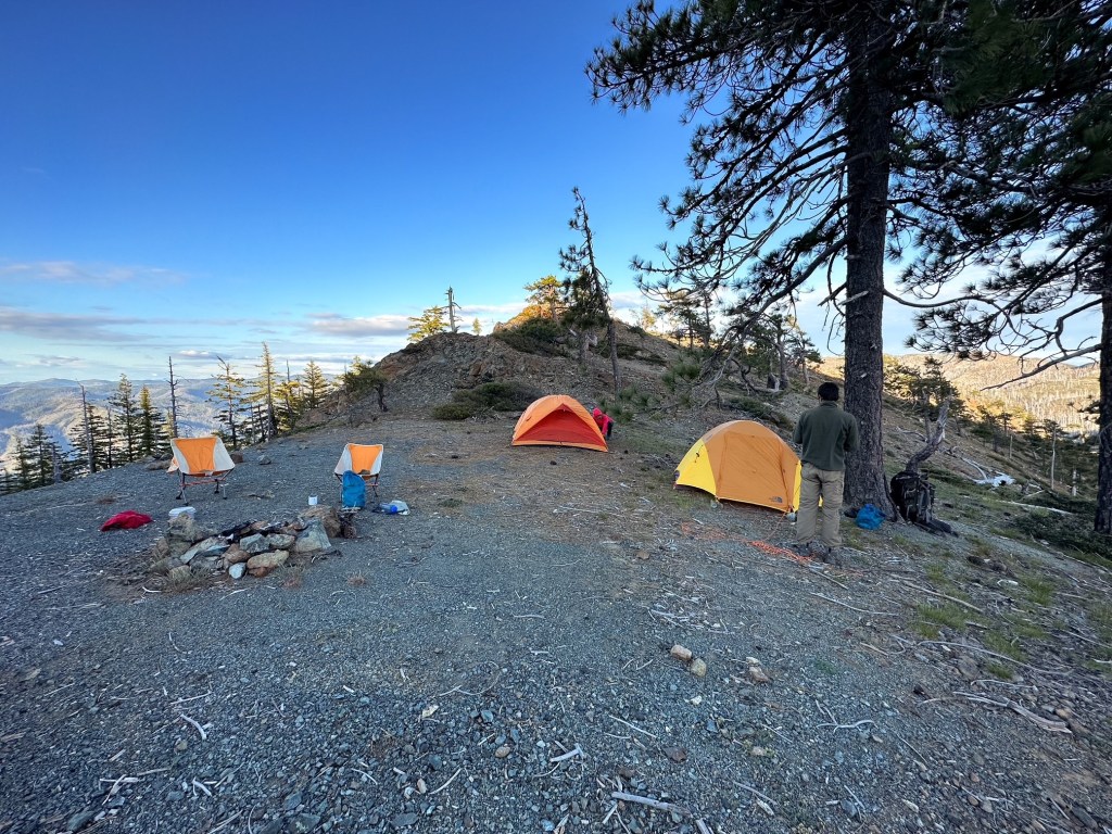 I eventually fell behind Garnet and started to struggle with my calves trying to seize into a charlie horse. I was probably less than half a mile from the pass when my calf cramped. I was frustrated because I had drank almost all of my water and wasn’t even over exerting myself. One water bottle was even full of electrolytes. I felt fine in every other aspect, but my body obviously needed more water. I had to shorten my steps the rest of the way to keep my calves from cramping again but I eventually made it to the pass with Garnet waiting. I won’t even bother telling you how long he had been waiting for me. We continued straight to head down the Slide Creek trail in search of a camp. We knew there was a decent one at least a mile down, but ended up finding one less than a few 100 yards from the pass that worked perfectly for our base camp. There was a creek not too much farther down the road either. I’m not sure how reliable this water source is for year round visits, but if you are ever in need of water in this area look for the Darlingtonia plants. They grow where the water sources are most concentrated. Strava tracked my mileage from where we parked to our camp at 5 miles with 2,650′ of elevation gain. I took a screen shot when I reached the pass of the mileage and it was around 4.85 miles. The elevation gain would have been the same since we only headed down to reach camp.