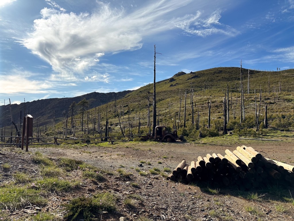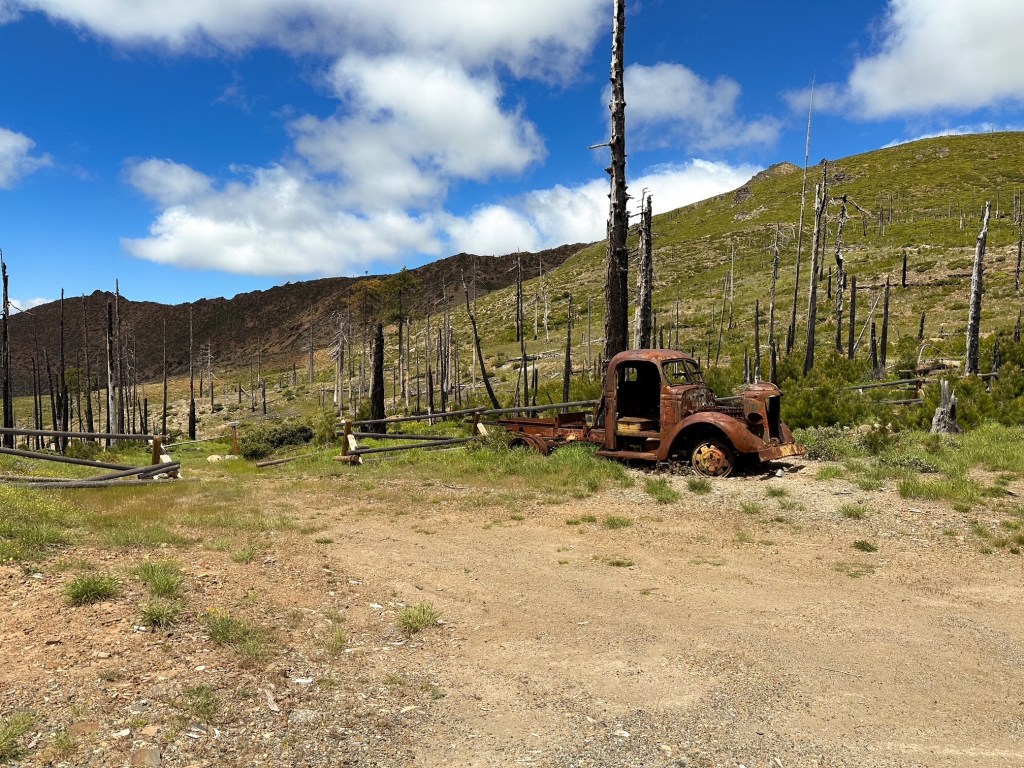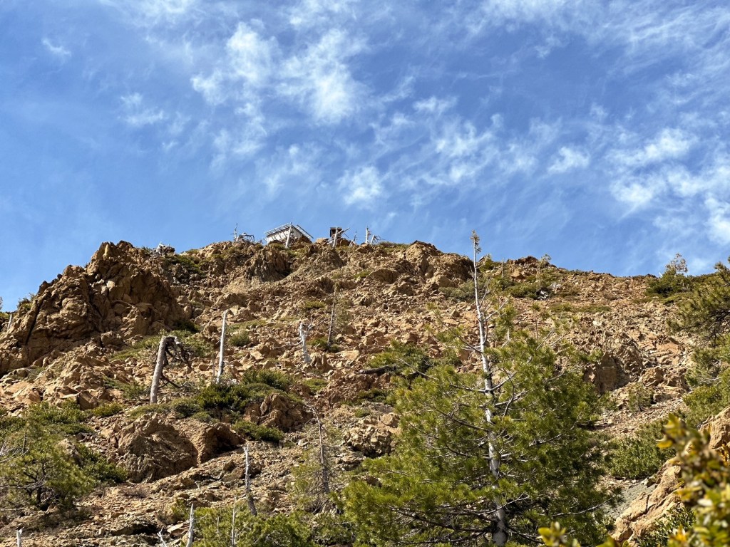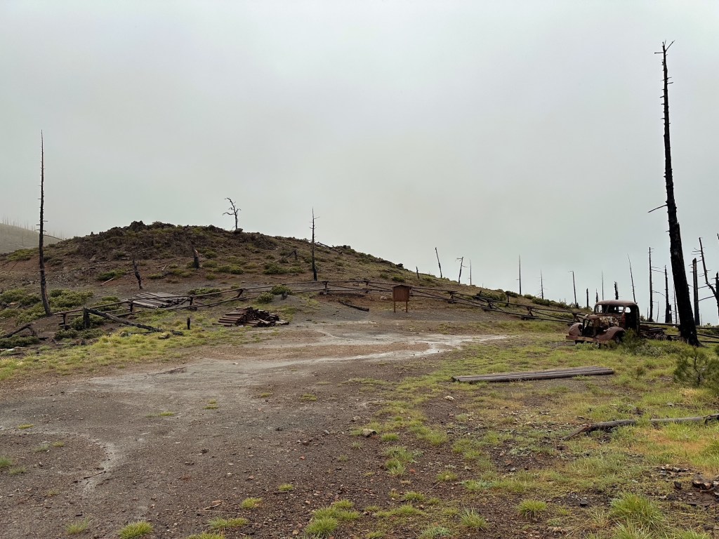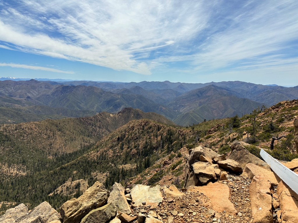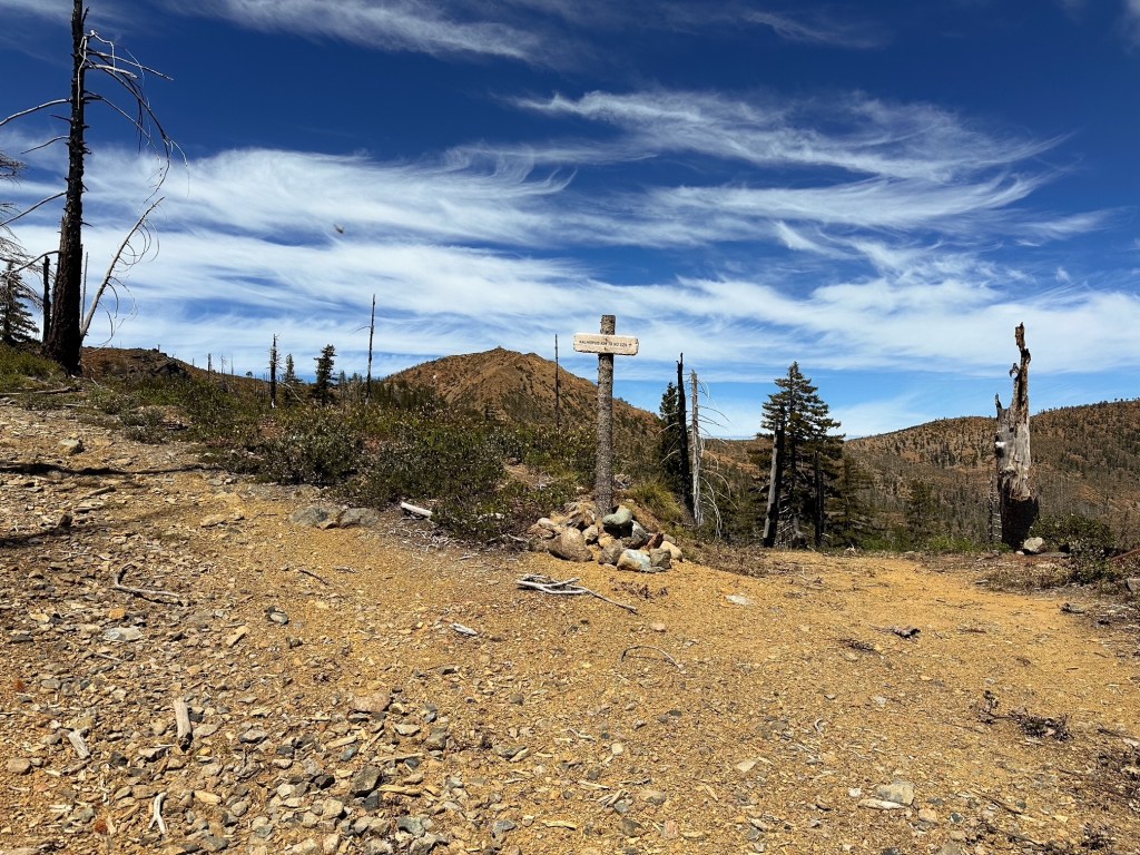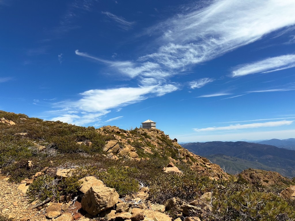Once you have determined which route you want to take to reach Chetco Pass, the official hike to Pearsoll Peak begins. There are three trails that leave from Chetco Pass. The Kalmiopsis Rim Trail #1124 continues on both the left and right side of the pass, while the Slide Creek Trial #1102 continues straight (if you’re looking at it head on from the road). The hike to Pearsoll is accessed from the right hand side of the trailhead and follows the old road to the official lookout trail. This is the only area with the wood fence cut out – I’m not sure if that was intentionally done or if someone personally cut it to drive farther up the road. The old road continues for a mile before you reach a fork with your first view of Pearsoll Peak. The Kalmiopsis Rim Trail continues straight, but you will want to take the road heading left. This road continues for another mile before ending at the remains of the old Pearsoll Mine and narrowing into the official Pearsoll Peak Trail #1125. The Pearsoll Peak Trail climbs steeply to the back side of the ridge for half of a mile to reach the summit. The map shows that this trail can be accessed from the continuation of the Kalmiopsis Rim Trail on the other side as well, but we did not scope out that route (Aka if you continued straight at the aforementioned junction). The tread along the trail is in mostly good condition given that it is built into the rock, there is only one section that looks like it could erode over time near the main switchback given the looser conditions. We enjoyed our time on the summit with a leisurely lunch before heading back down. Breaking up the distance allowed for us to have more time to enjoy our surroundings.