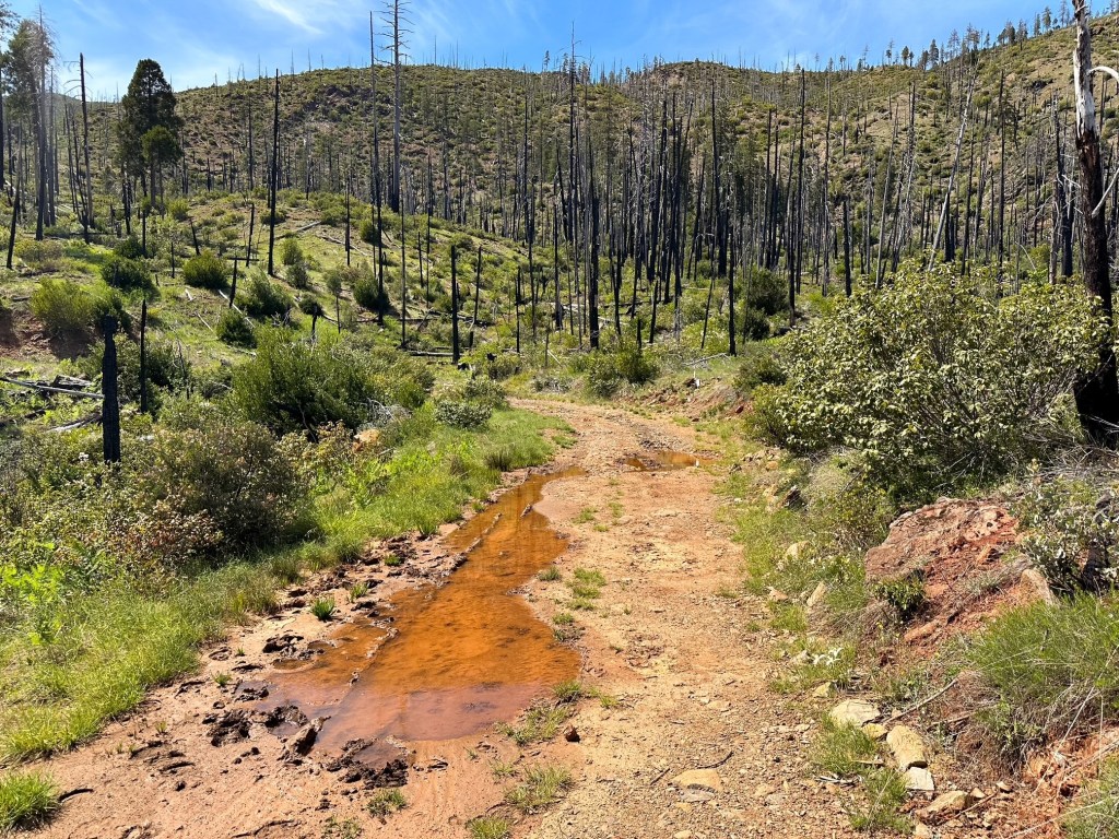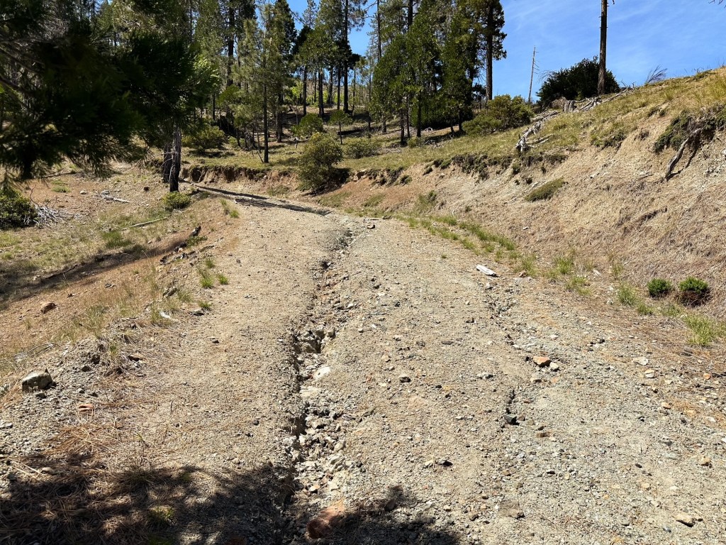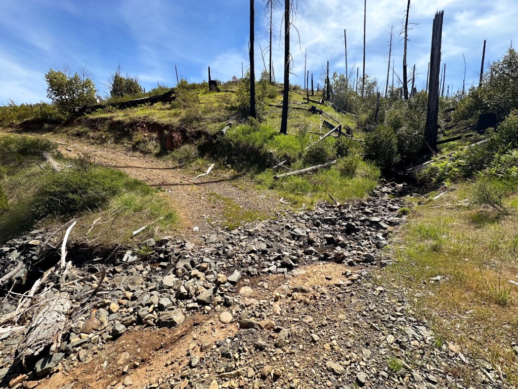 We reached the trailhead just after noon and had a quick lunch before saddling up with our packs to hike the road. We knew we had at least 4-1/2 miles of road walking to reach Chetco Pass and planned to find camp just beyond along the Slide Creek trail. The temps were forecast for a high in the low-60s and mostly sunny, but with the exposure and weight of our packs it ended up feeling much warmer. We had to hike down the road and cross via the vehicle bridge due to the swinging bridge closure. Once across the Illinois River, we headed towards the yellow gate at the back of the parking area. The only other gate is posted with private property and no trespassing signs for the McCaleb Ranch behind the bathroom. There is also a bridge that leads to the Fall Creek Trail off to the left. The road wastes no time gaining elevation and we took breaks often in what little shade the few trees had to offer. The condition of the road is deteriorating and I wouldn’t be surprised if they end up permanently closing the gate at some point instead of making the needed repairs. There are some sections that are not that bad, but there are major erosion issues happening that will make it difficult for most vehicles. The worst of it was about a mile below the pass on a tight switch back. The water run-off cuts deep through the road and a small section has eroded away to no more than the width of an ATV. You would most likely have to put one of your wheels on the side slope or off the road completely to fit a standard vehicle past this point. These are just cautionary warnings since the road is narrow, rocky, soft bedded when wet, and does not offer many turn around points if you decide to abort part of the way there. It’s obvious this road does not see much traffic just from the amount of shrubs and grass growing through it.