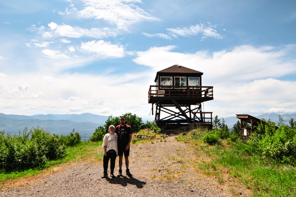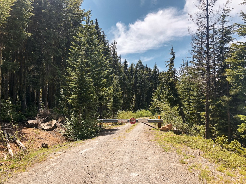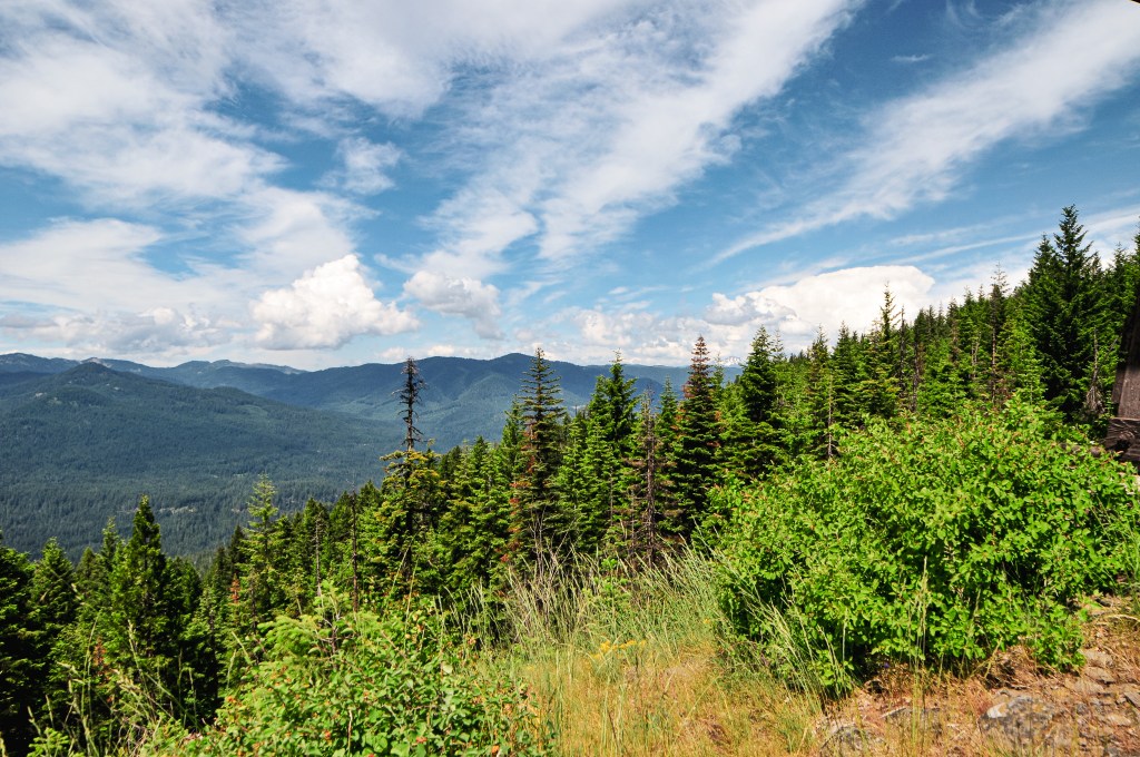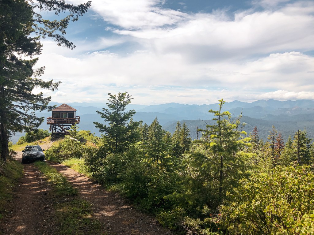 We back tracked a bit to cross the South Umpqua River on NF-29 and followed this to NF-2838 off to the left. We stayed on NF-2838 until we reached the gated NF-950 where the road walking would begin. There were a couple signs for Acker Rock along this route that made it easy to navigate. This is a rentable fire lookout as well, but the season is much shorter and it does not open until August 1st. We decided to visit outside of the rental season since it’s directly on the ground and would make it hard to visit without disturbing the renters. There was one other car parked near the gate when we arrived and we could only assume they were at the lookout. If you are renting, you should get a code to unlock the gate to drive closer. Though there is still a short but steep 0.4 mile hike to the fire lookout to be aware of. We packed a lunch to have at the lookout and began our road walk. It’s fairly straight forward. We followed the road until it dead ends in a parking/turn around area. From there, it turns into more of a trail that switchbacks up the side of the ridge. You will pass the exposed composting toilet on your way up and hope that no one is using it at the time of your visit (or hope that no comes up while you are using it). There were some smaller downed trees we had to navigate around at the start of the trail, but I’d be surprised if someone hadn’t cleaned them up since our visit. There was no one else at the lookout when we arrived and we didn’t run into anyone along the road either. We speculated that maybe the vehicle was abandoned or they were wondering somewhere off trail. We eventually got our answer as we saw two guys rock climbing up the other side of the ridge. One of them came over to check out the lookout while we were having lunch and gave himself a scare when he didn’t hear us. We spent a good chunk of time hanging out at this lookout since the only thing left to do for the day was find a place to camp.